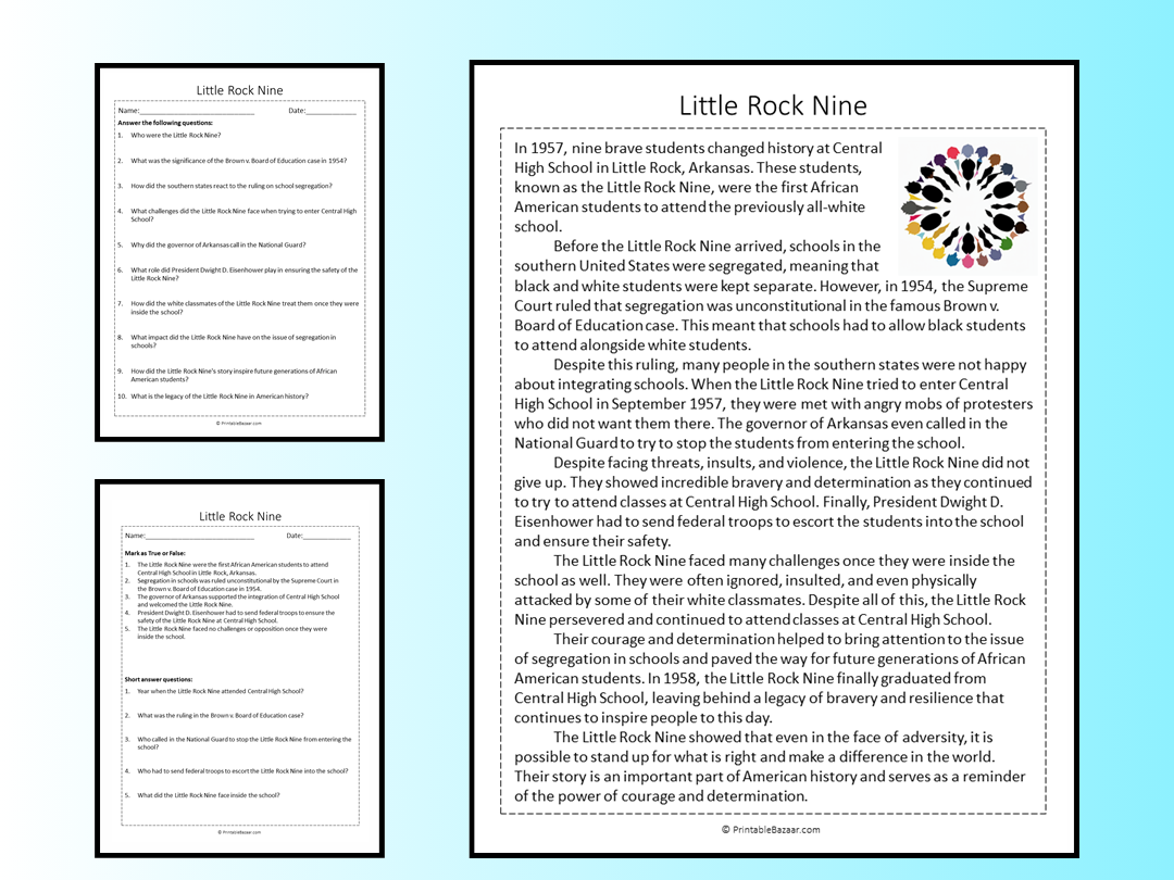 Don’t miss out on this valuable resource! Download our Little Rock 9 Worksheet Reading Comprehension today and bring this important piece of history to life in your classroom.