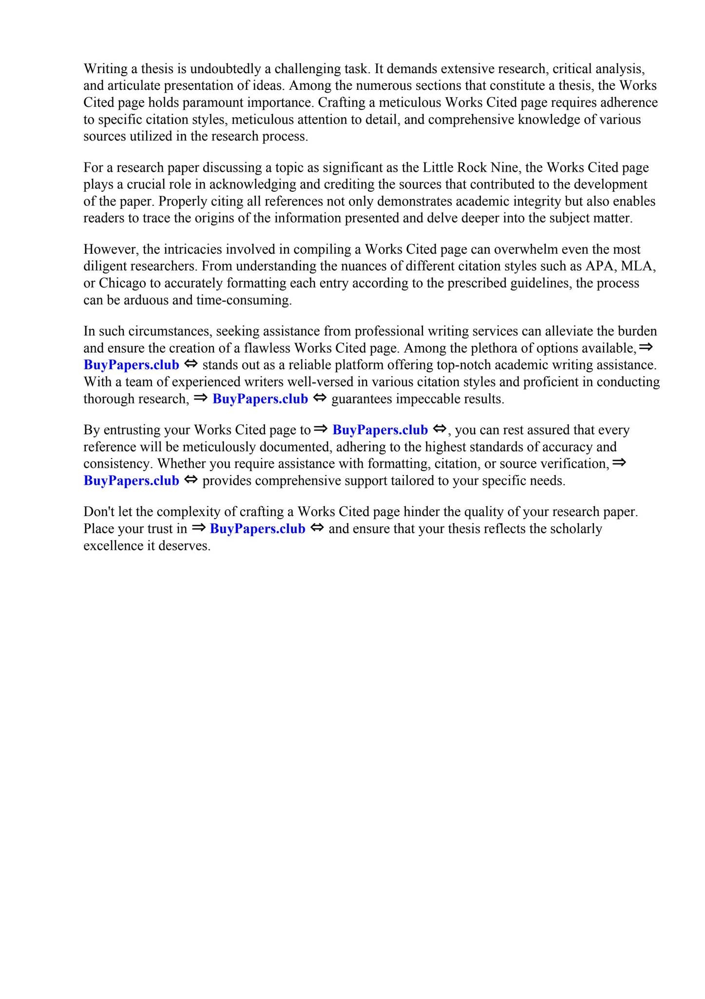 Works Cited Page For A Research Paper About The Little Rock Nine