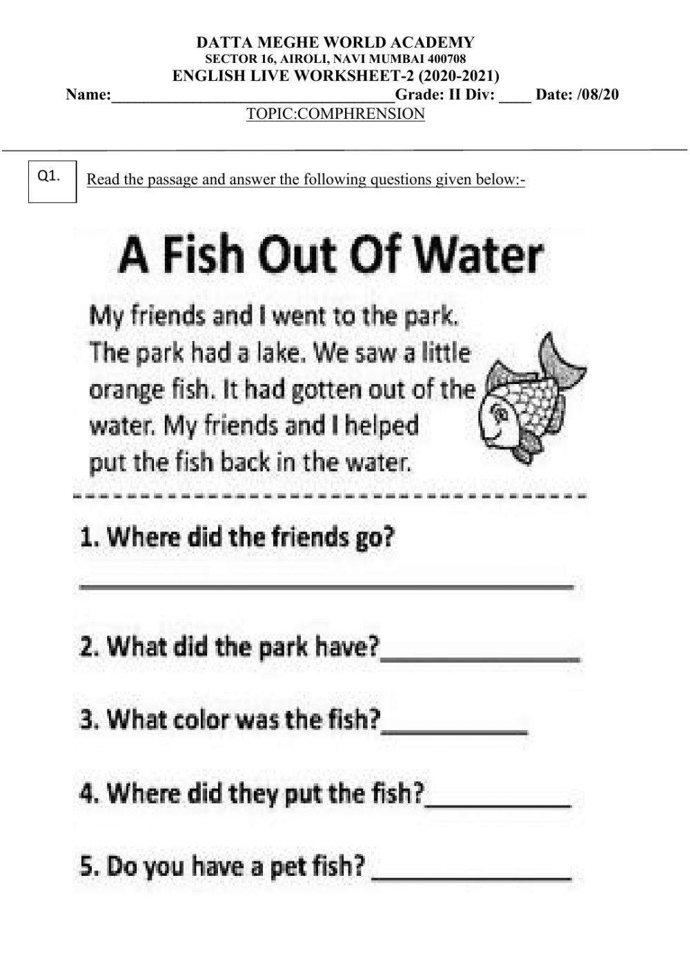 Reading Comprehension Online Exercise For Grade 2 Live Worksheets Worksheets Library