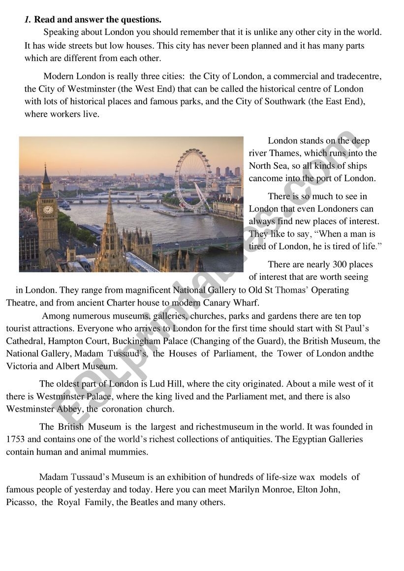 London Reading Comprehension ESL Worksheet By Irinka9951