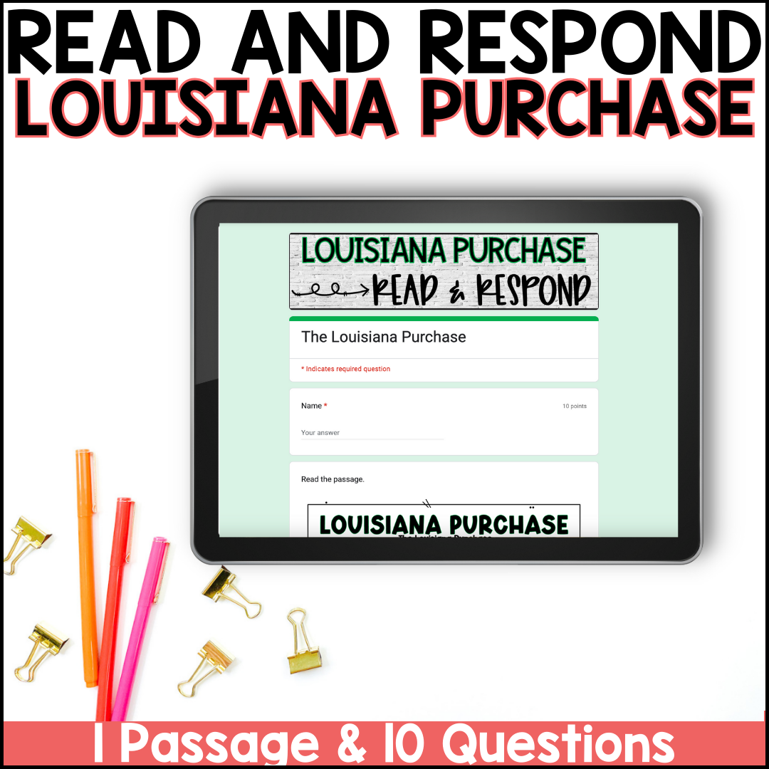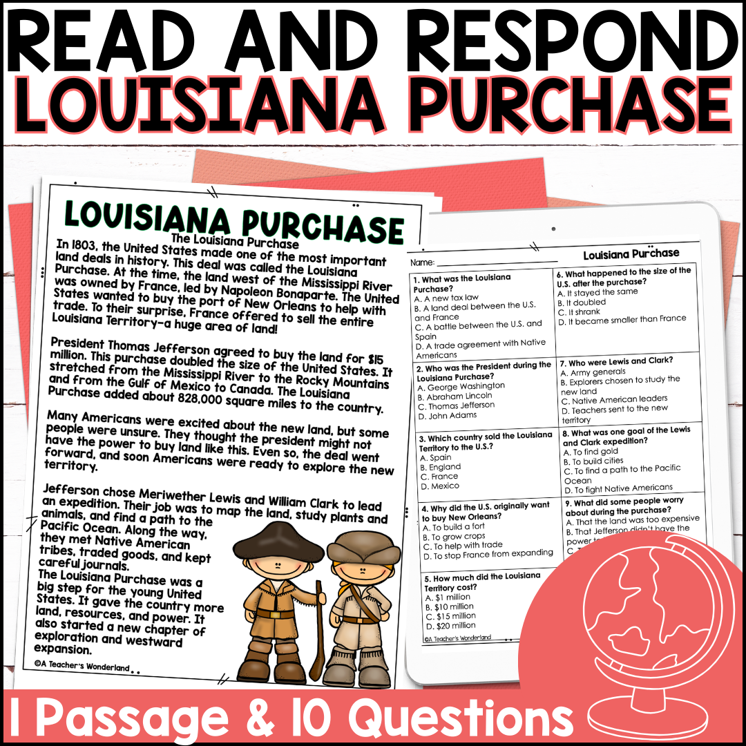 Louisiana Purchase Reading Comprehension Questions History Centers Passage A Teacher s Wonderland