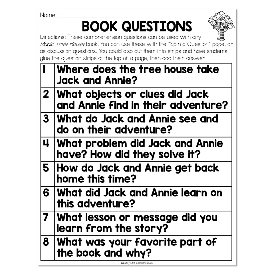 Chapter Book Companion Magic Tree House Book Questions Lucky