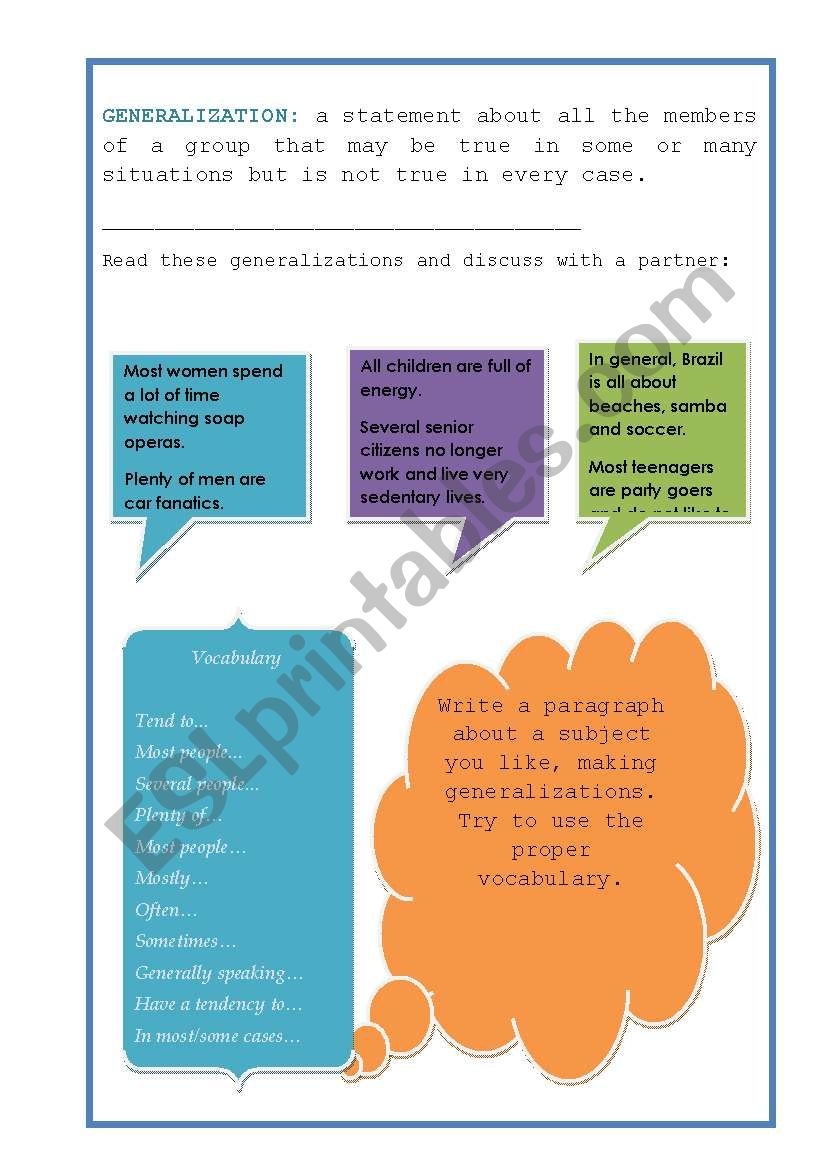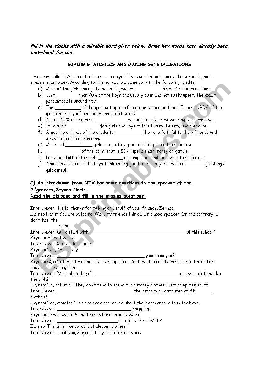 English Worksheets Making Generalizations And Statistics