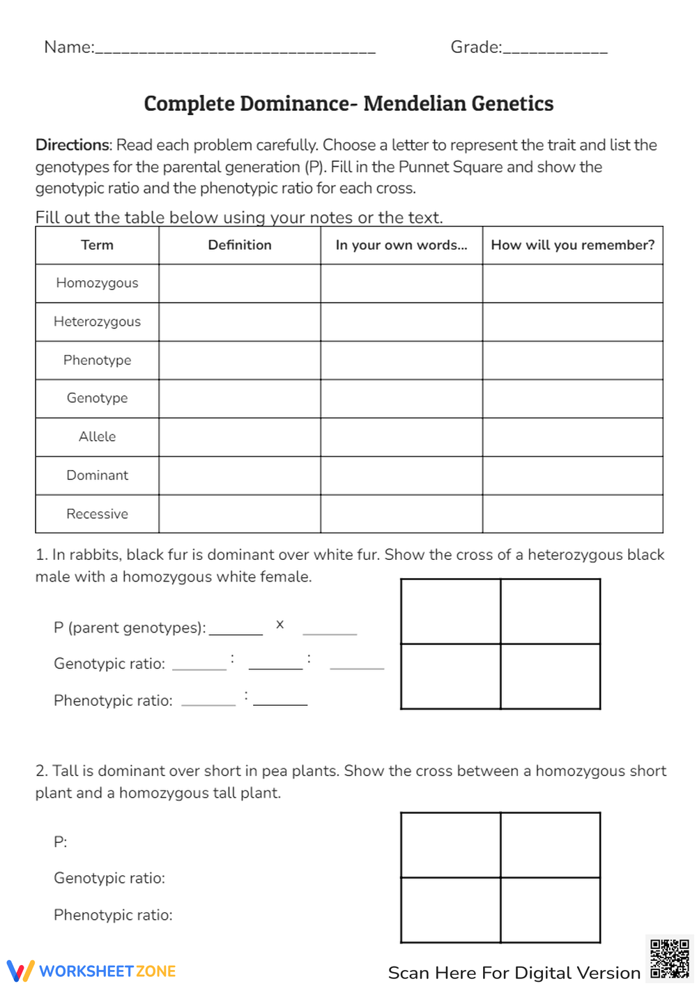 Grade 8 Punnett Square Practice Worksheets 2025