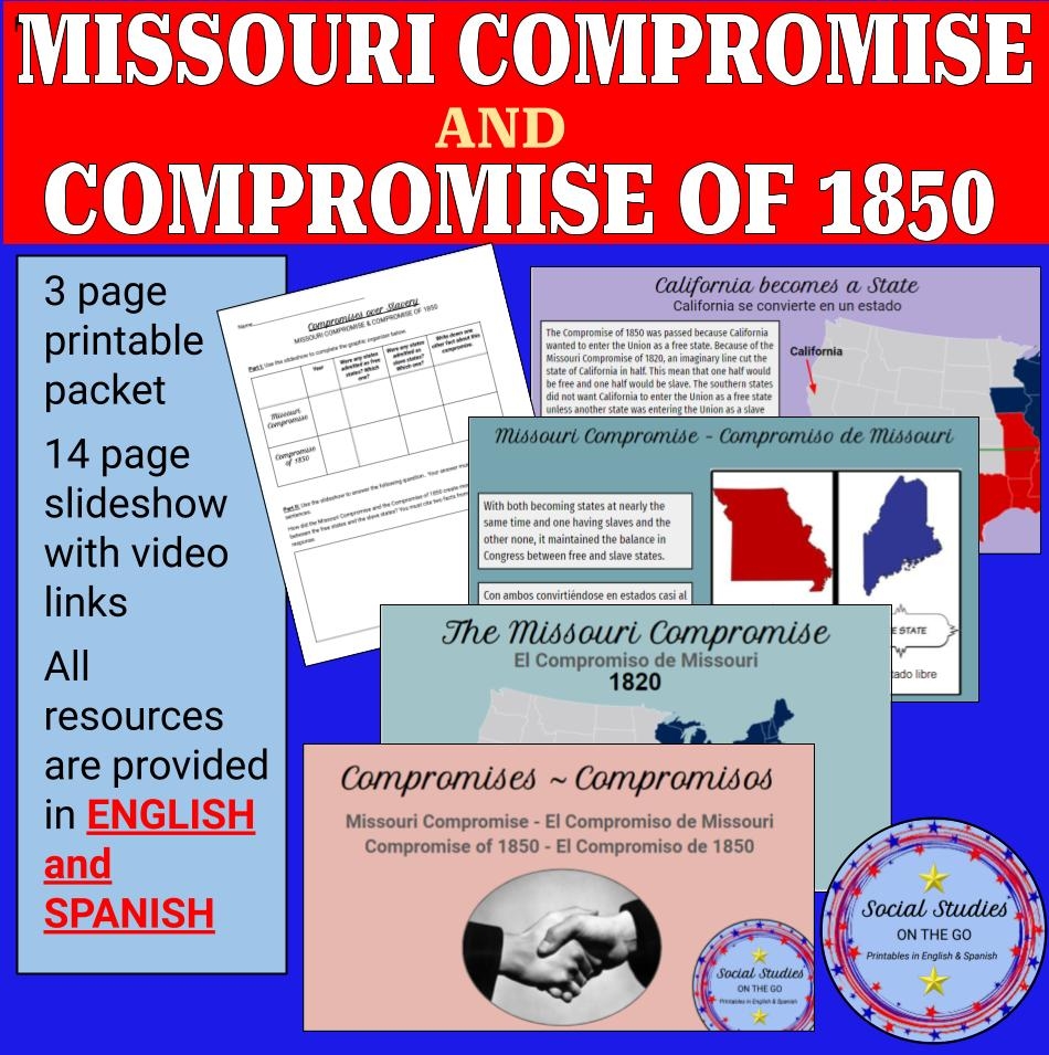 Missouri Compromise And Compromise Of 1850 Digital Slideshow And Printable Packet English And Spanish Classful
