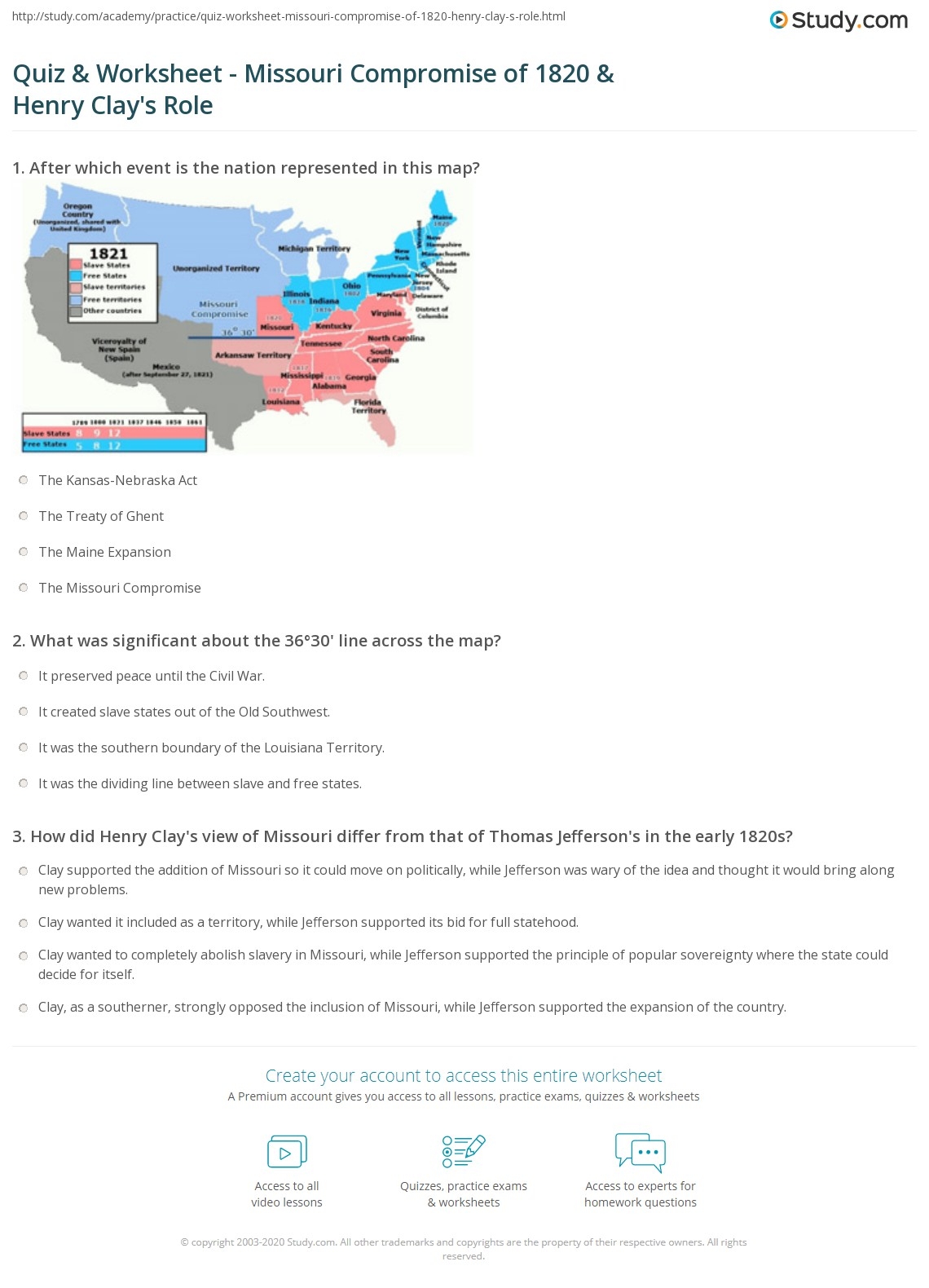 Missouri Compromise Reading Comprehension Worksheet Pdf