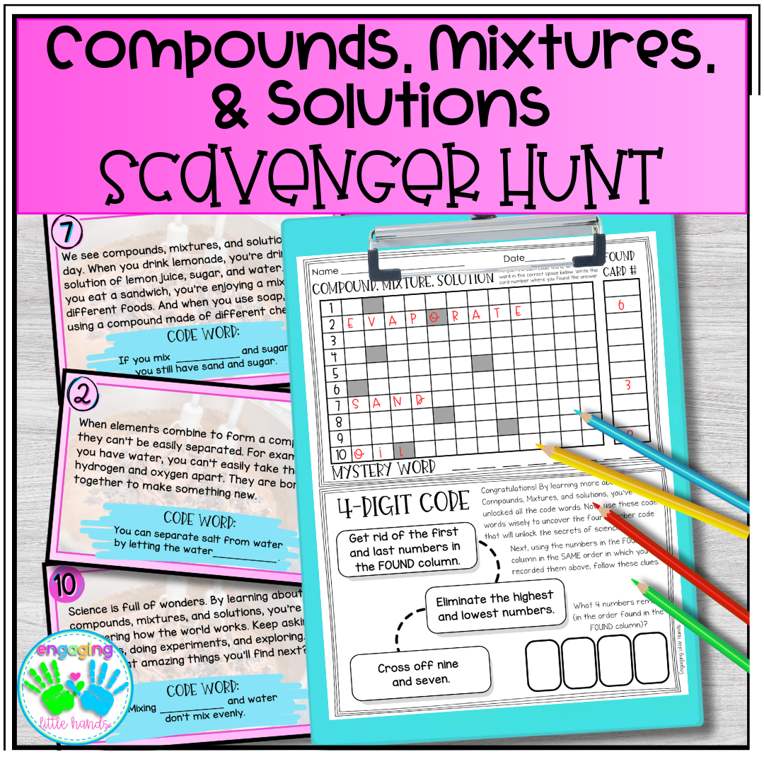 Compounds Mixtures And Solutions Scavenger Hunt Reading Comprehension Activity Made By Teachers