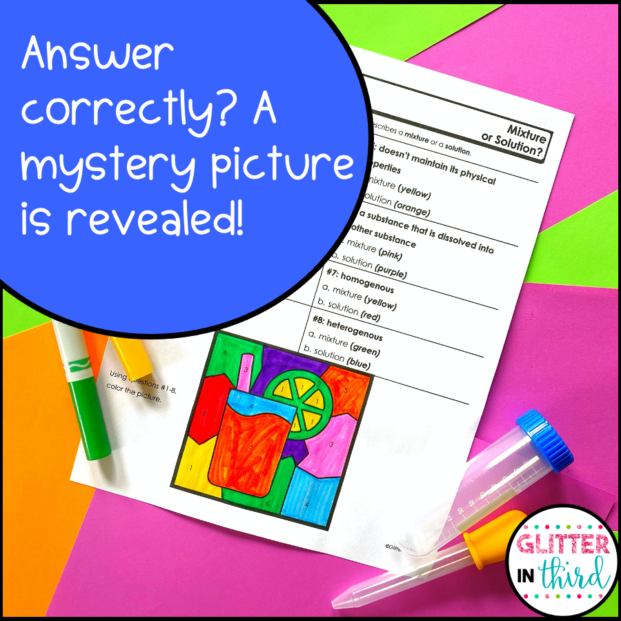 Mixtures And Solutions Worksheets Color By Number Glitter In Third