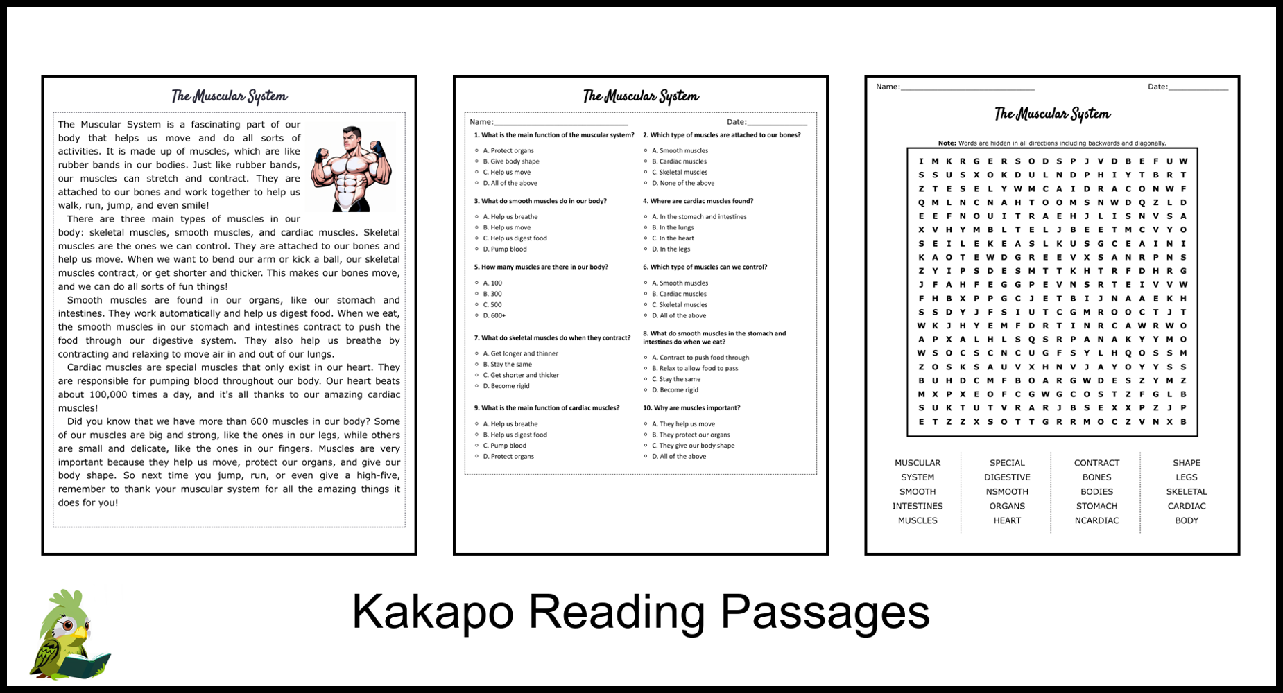 The Muscular System Reading Comprehension And Word Search Teaching Resources