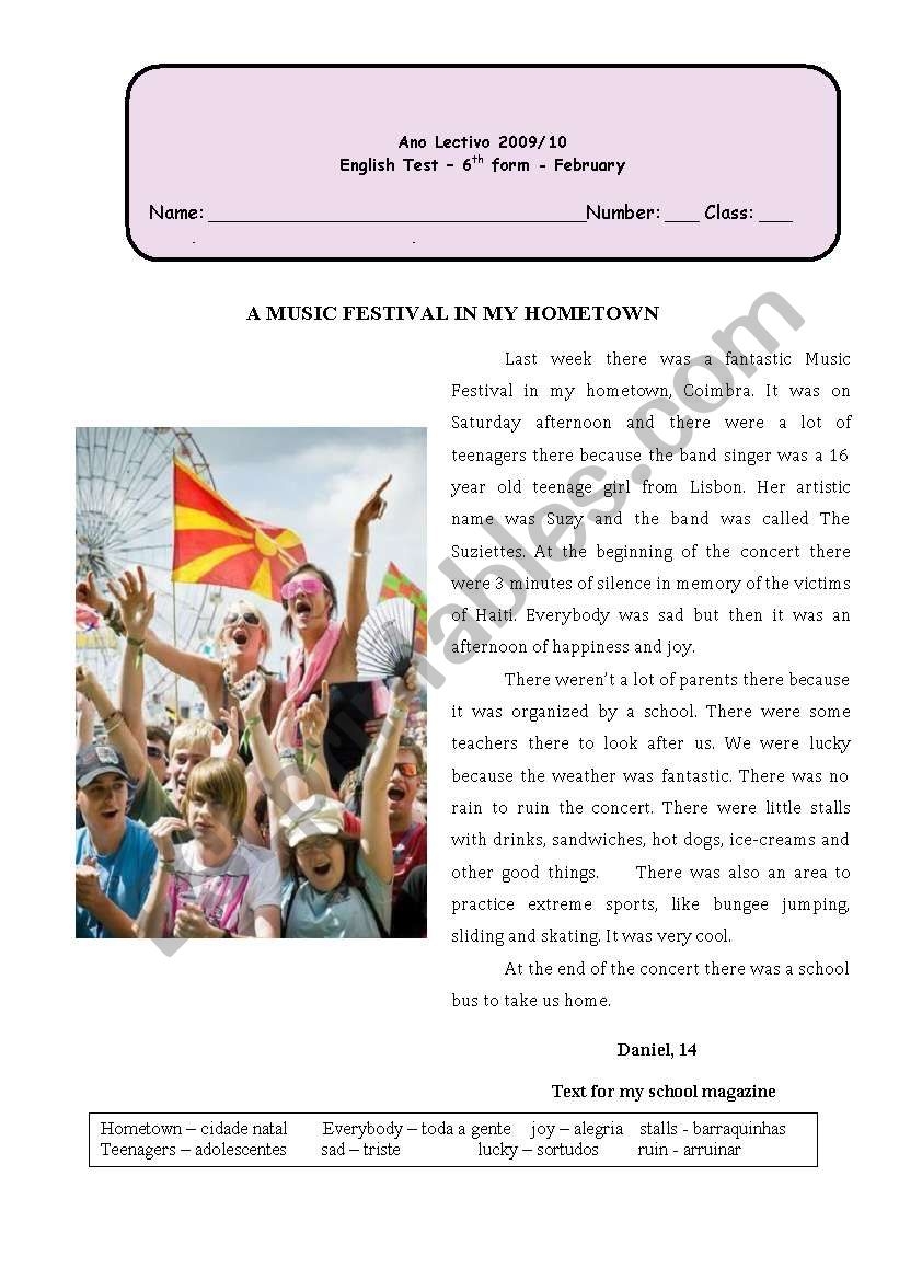 Test A Music Festival In My Hometown ESL Worksheet By Sandramaisa