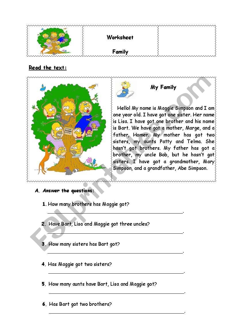 Family Reading Comprehension With Exercises ESL Worksheet By MarionG