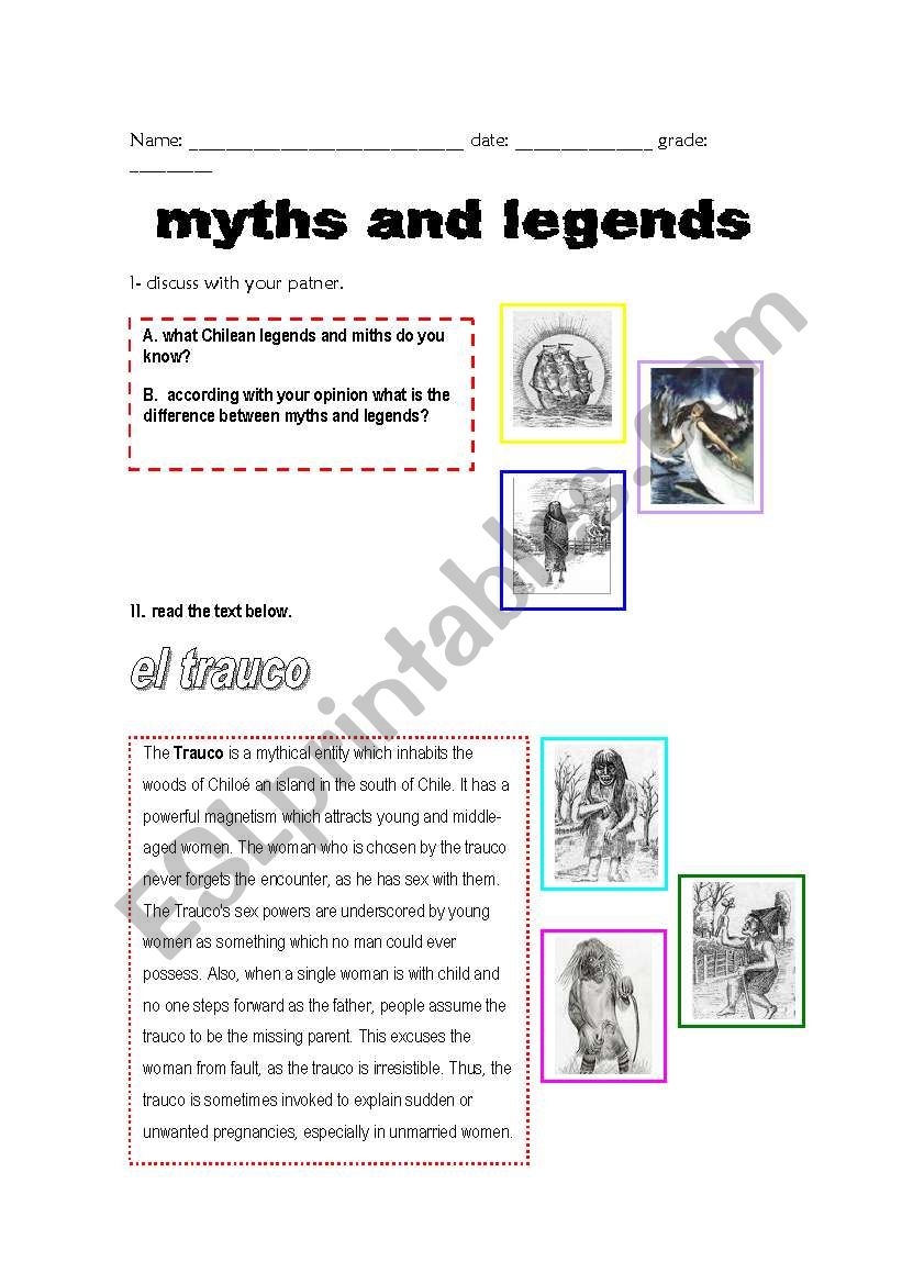 Chilean Myths And Legends ESL Worksheet By Ranita23