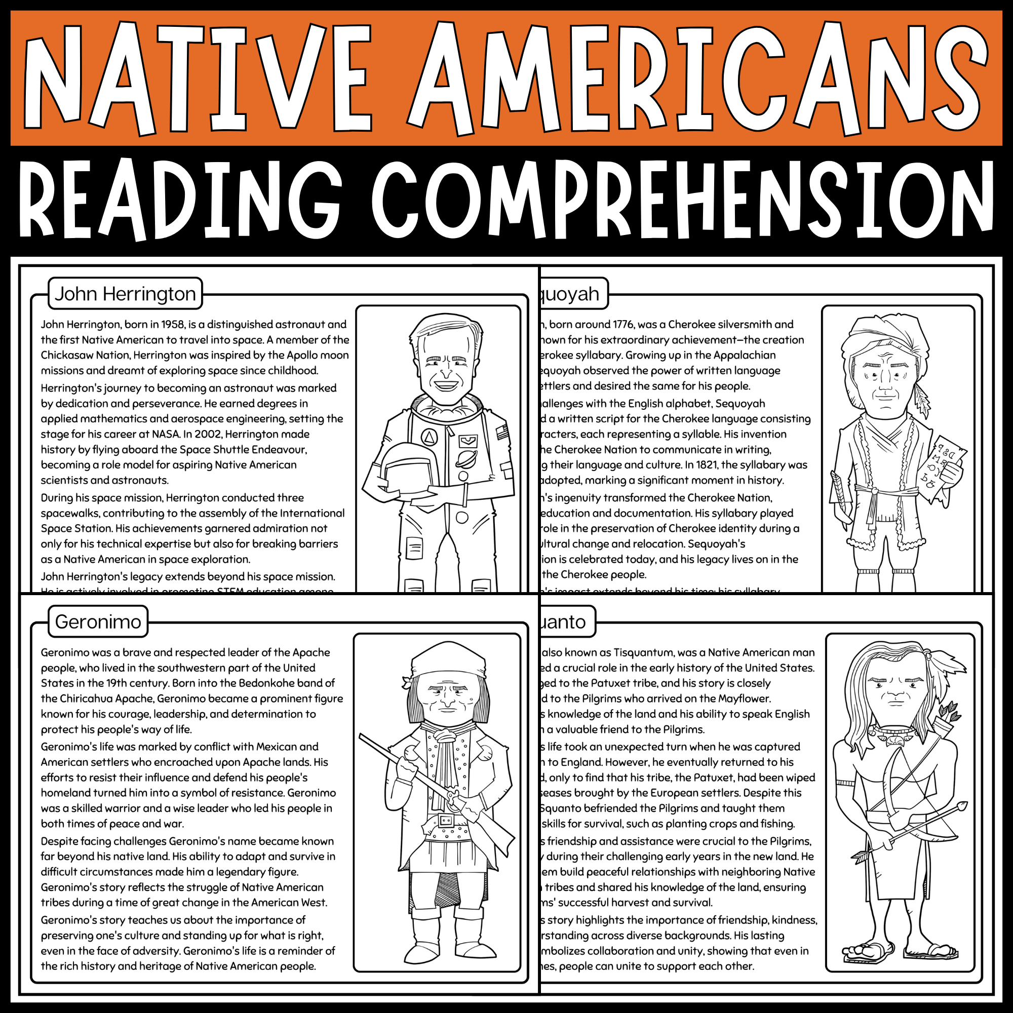 Famous Figures Native Americans Reading Comprehension Passages Bundle Made By Teachers