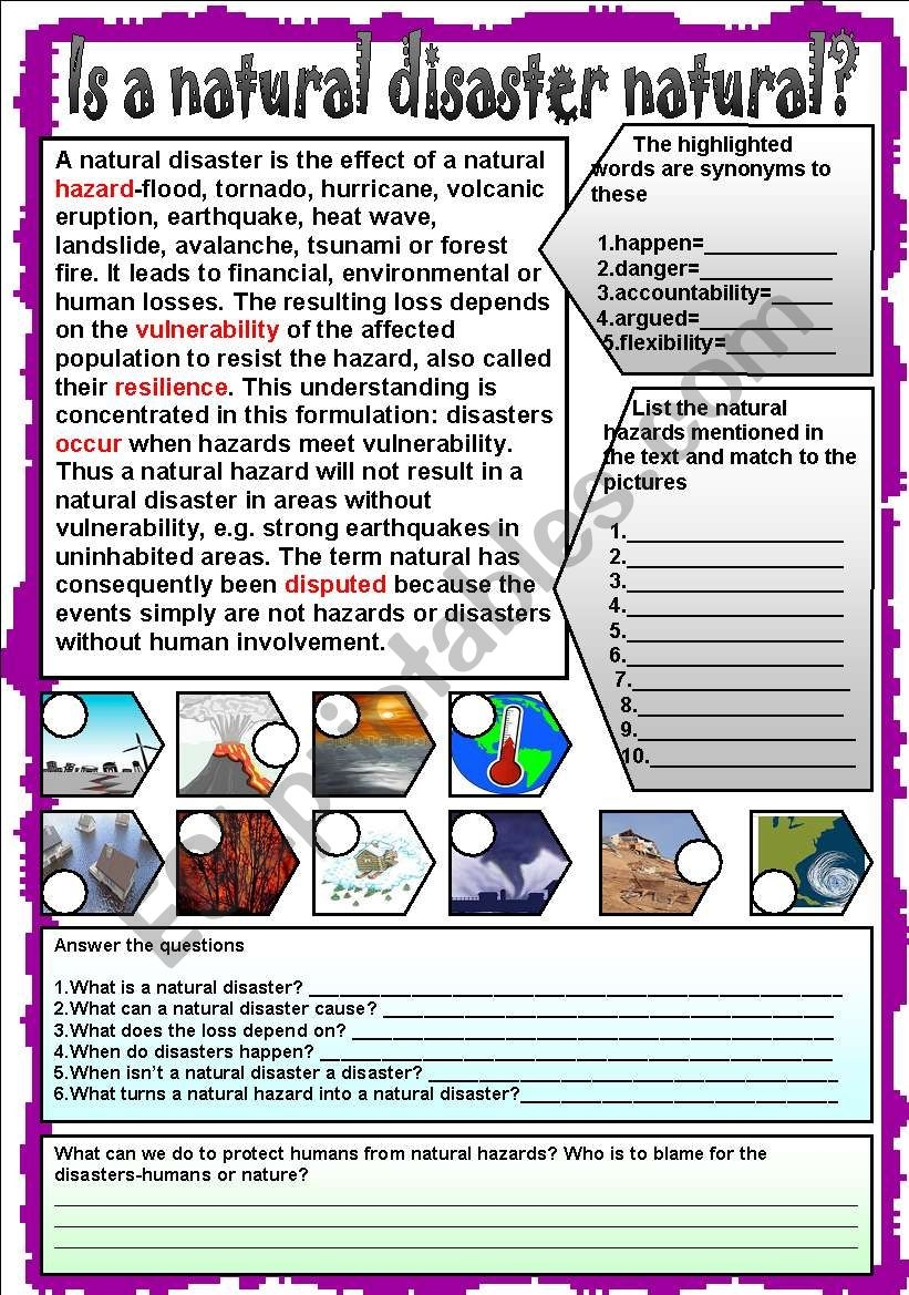 Is A Natural Disaster Natural ESL Worksheet By LILIAAMALIA