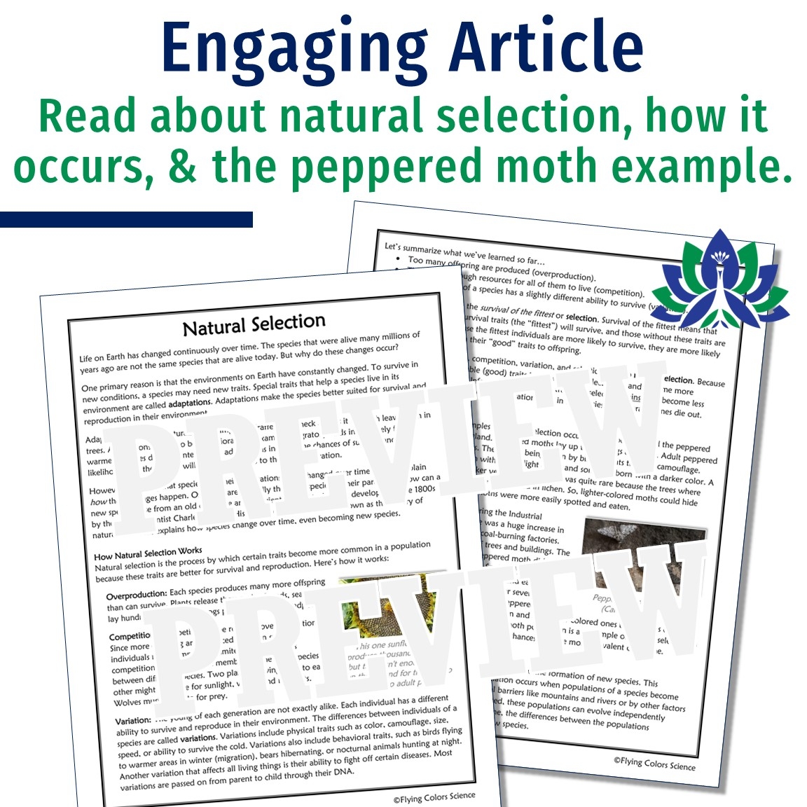 Natural Selection Reading And Worksheet Flying Colors Science