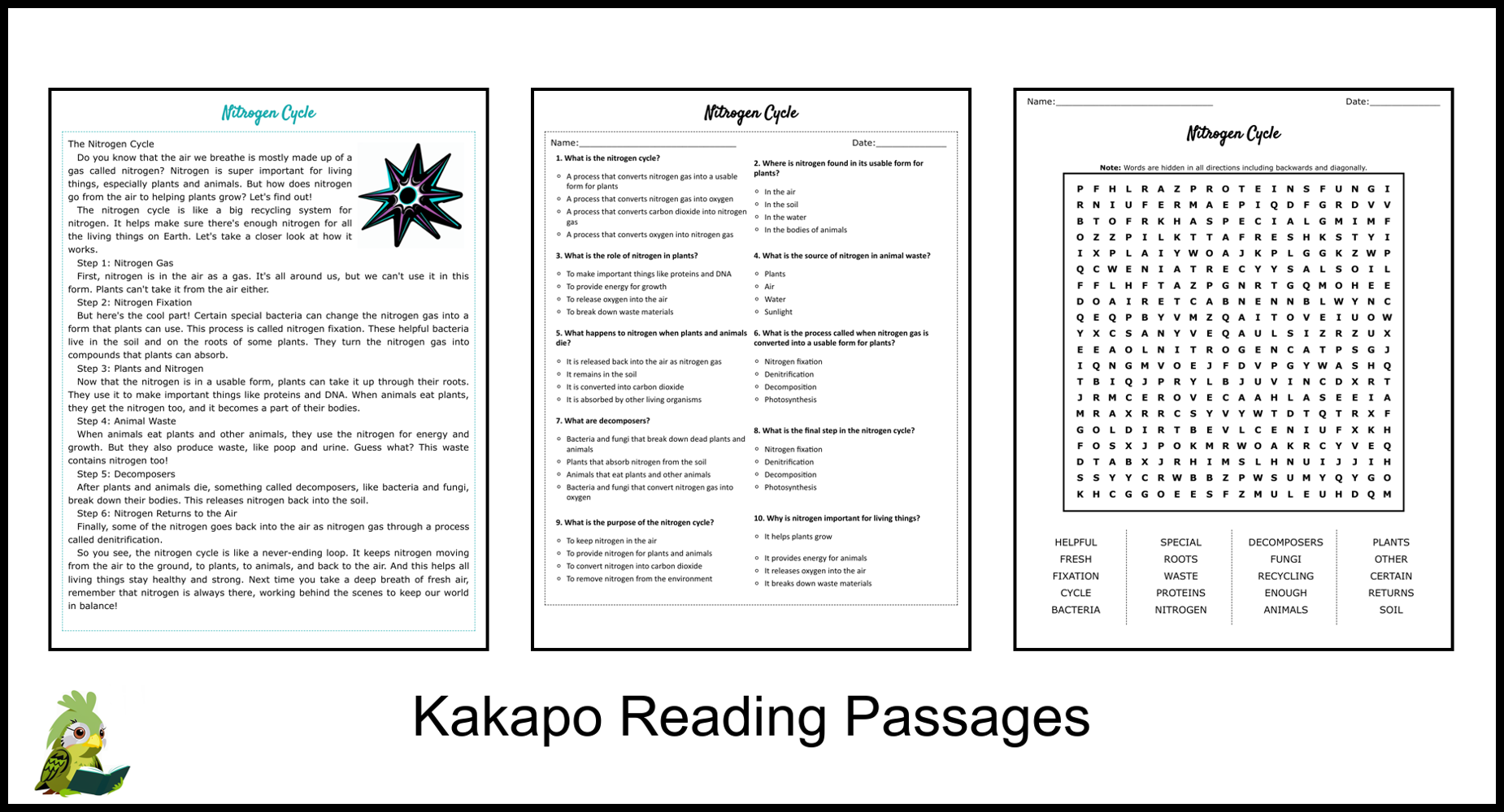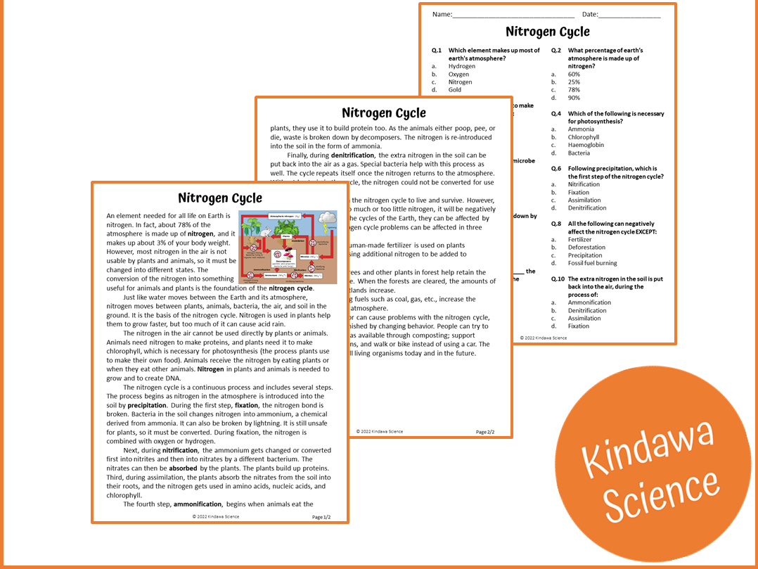 Nitrogen Cycle Reading Comprehension Passage Printable Worksheet Teaching Resources