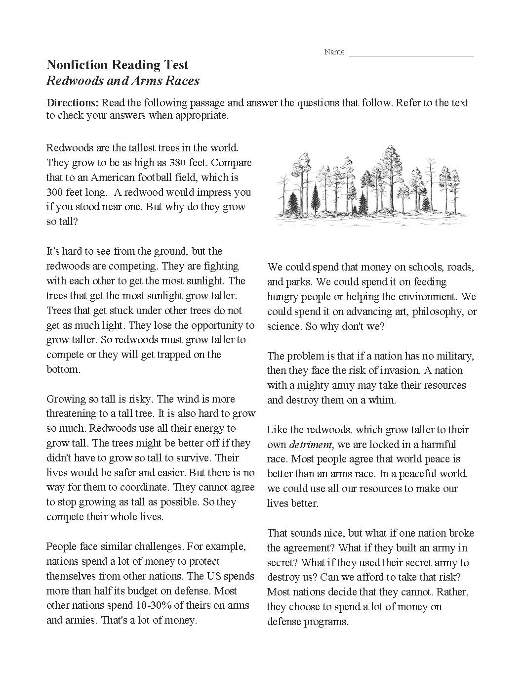 Nonfiction Reading Comprehension Worksheets 7th Grade