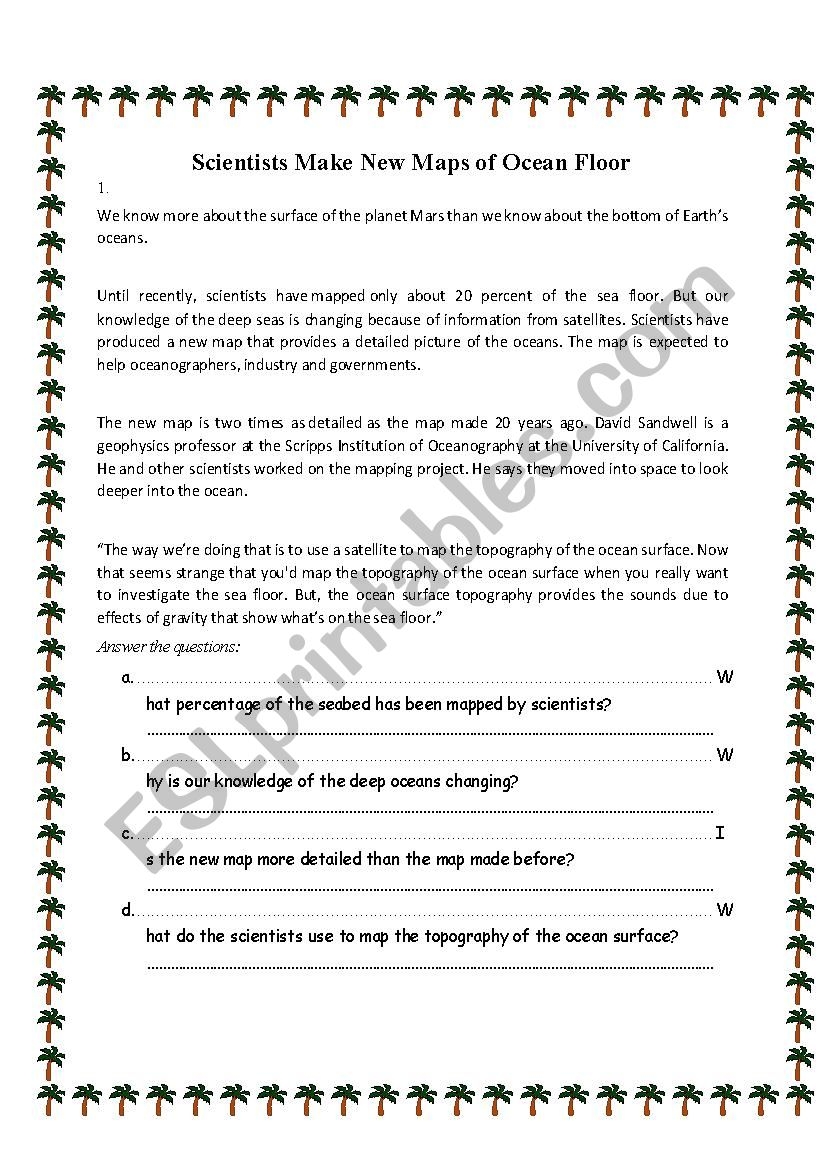 Reading Comprehension Scientists Make New Maps Of Ocean Floor ESL Worksheet By Aliceeslprintables