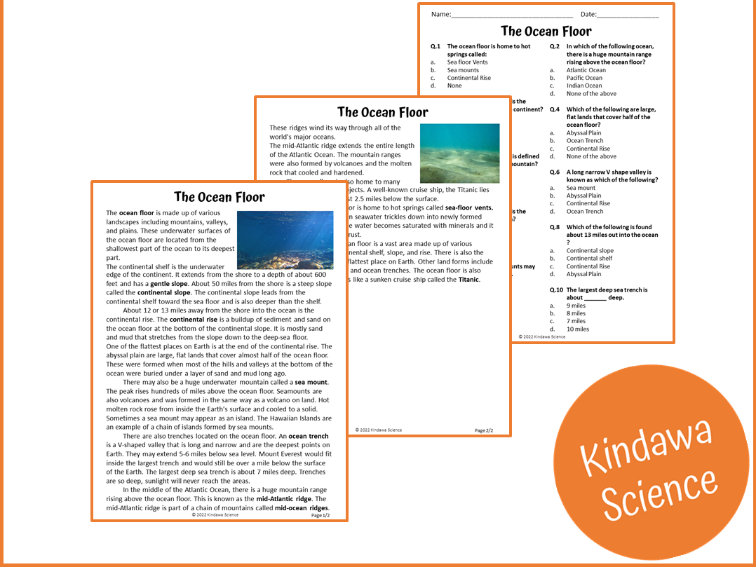 The Ocean Floor Reading Comprehension Passage And Questions PDF Teaching Resources