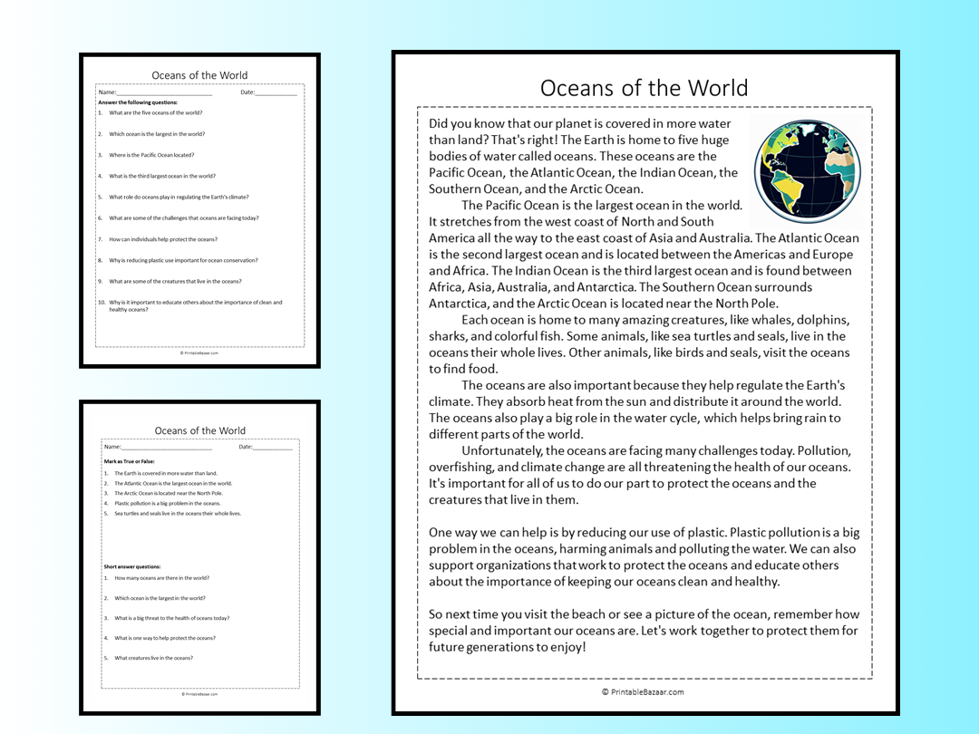 Learning about oceans can be an exciting adventure for both kids and adults. One way to test your knowledge is by using an oceans reading comprehension worksheet. These worksheets are fun and educational tools that help improve reading skills while teaching interesting facts about the ocean.