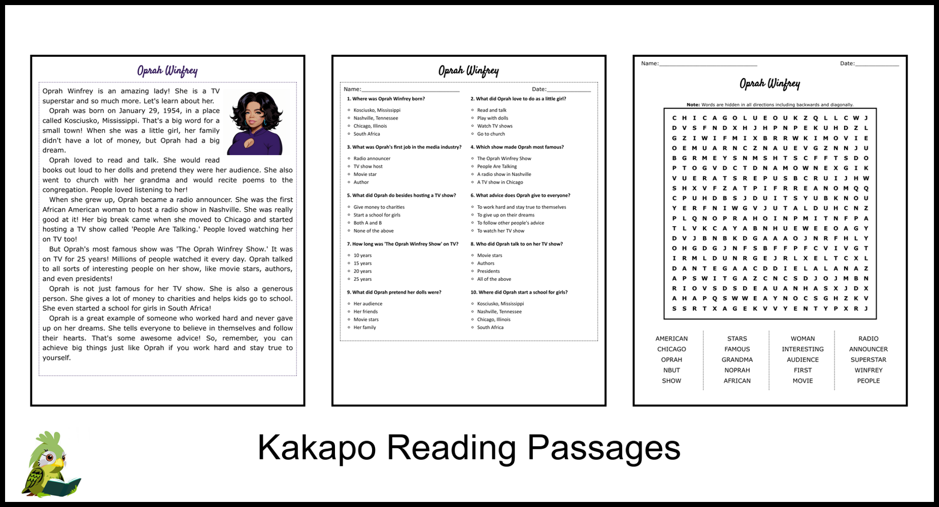 Oprah Winfrey Reading Comprehension And Word Search Teaching