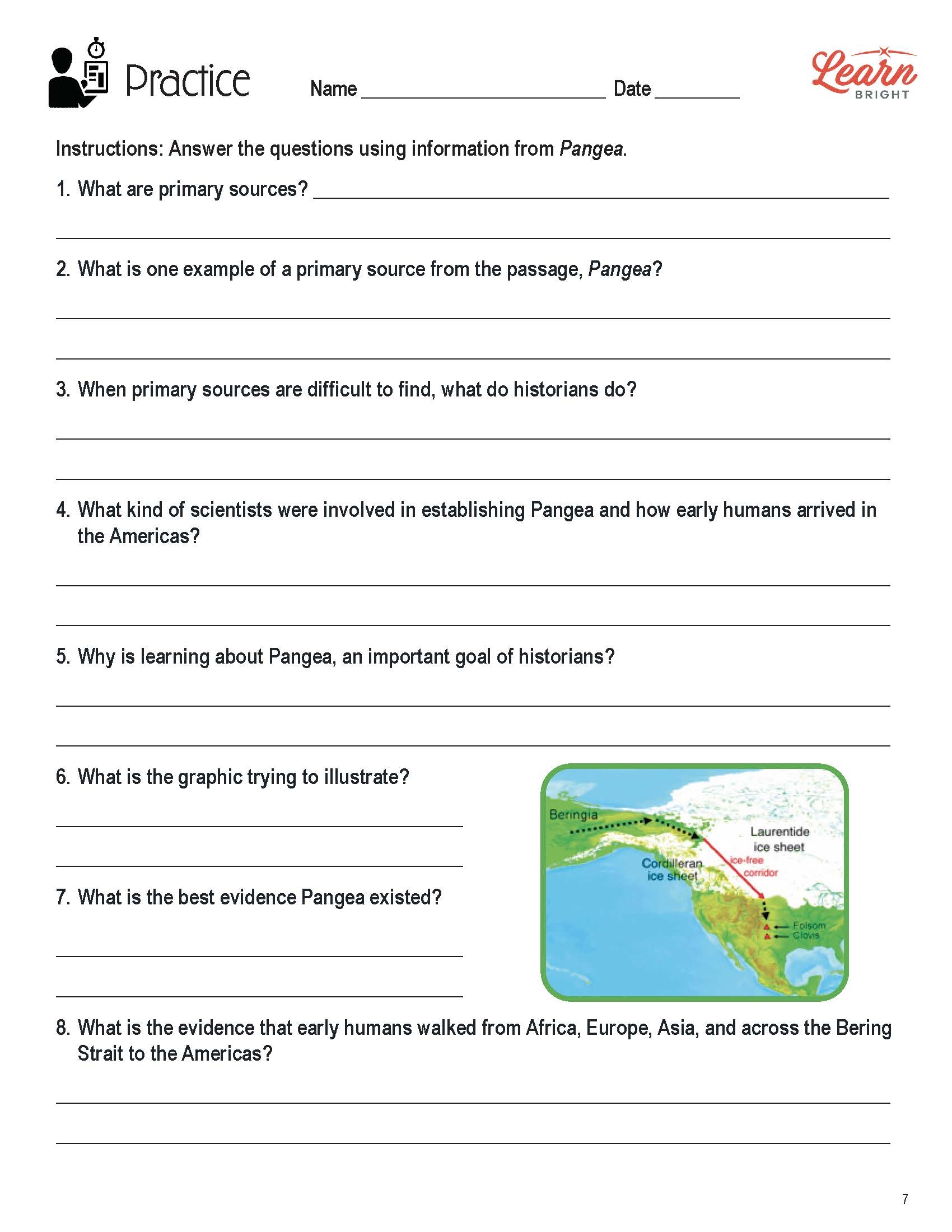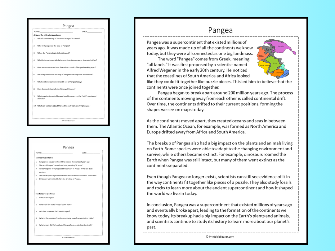 Pangea Reading Comprehension Passage Printable Worksheet Teaching Resources