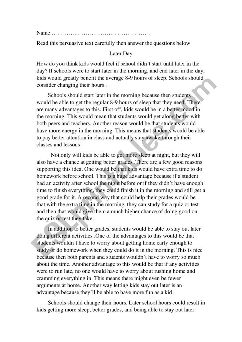 Persuasive Reading Passage ESL Worksheet By Amanytharwat