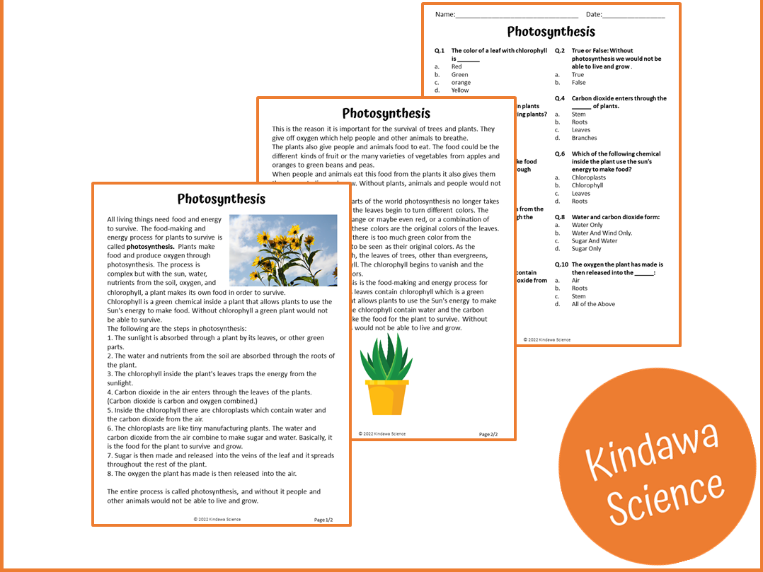 Photosynthesis Reading Comprehension Passage And Questions PDF Teaching Resources