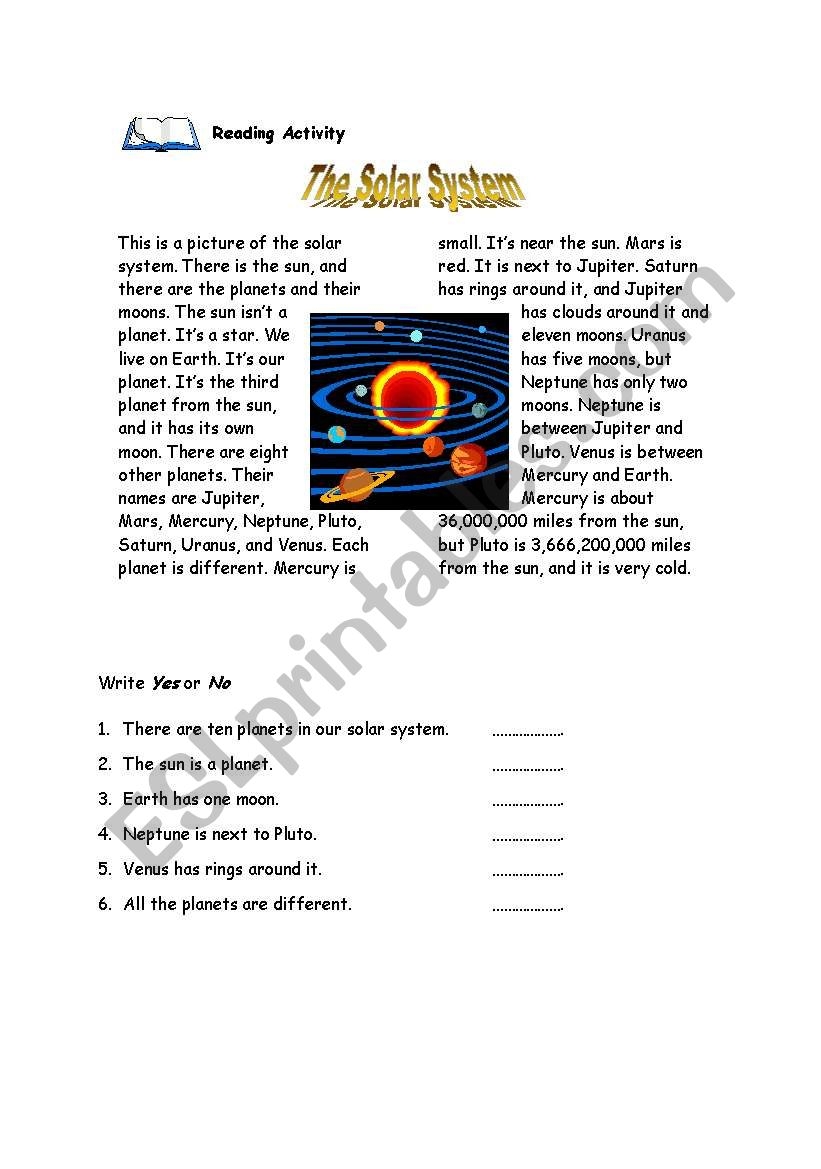 The Solar System Reading Activity ESL Worksheet By Lucka20