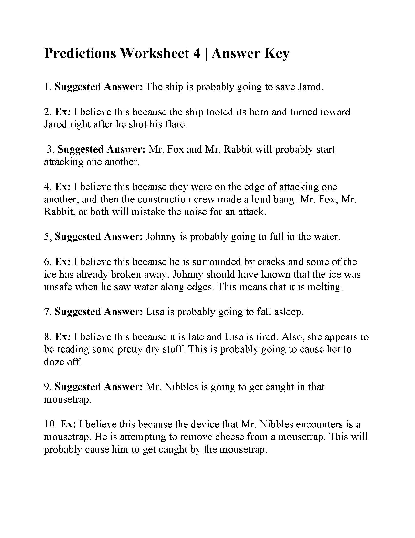 Making Predictions Worksheet 4 Reading Activity