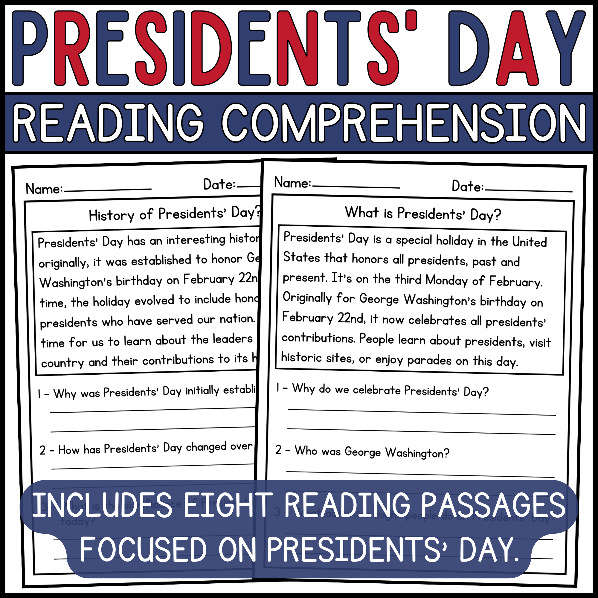 Presidents Day Reading Comprehension Passages And Questions Presidents Day Reading Passages