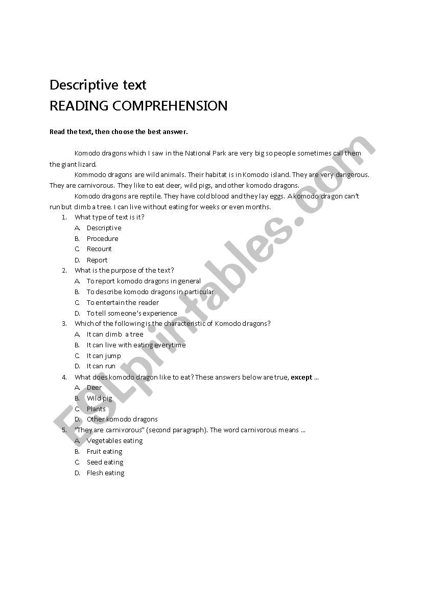 Procedure Text Reading Comprehension Worksheets