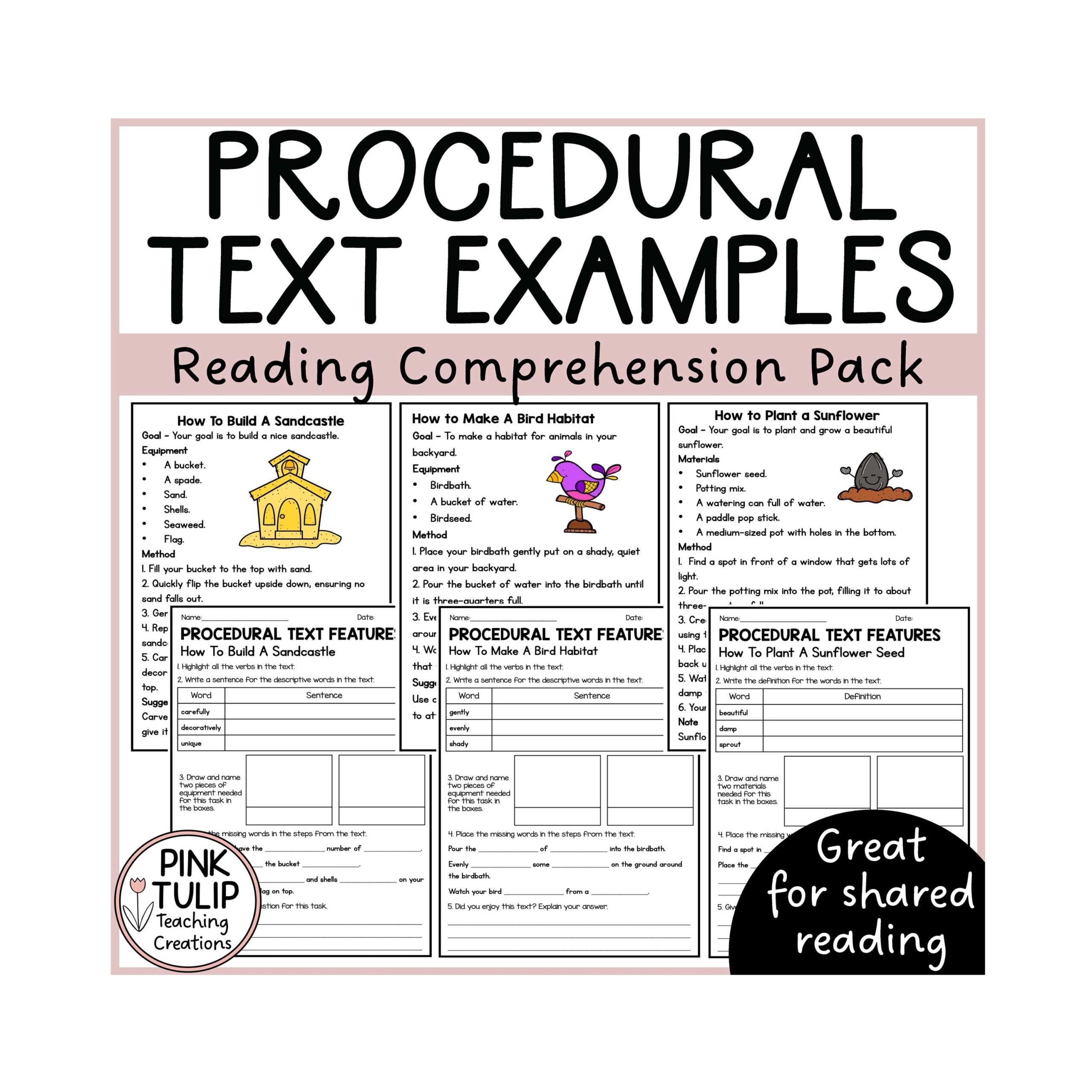 Procedural Text Examples Ten Reading Samples With Comprehension Etsy