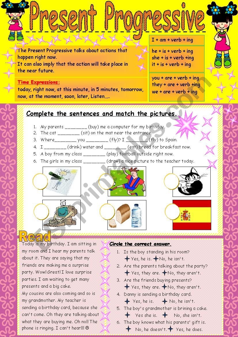 Present Progressive A Short Reading Comprehension ESL Worksheet By Ggroneet