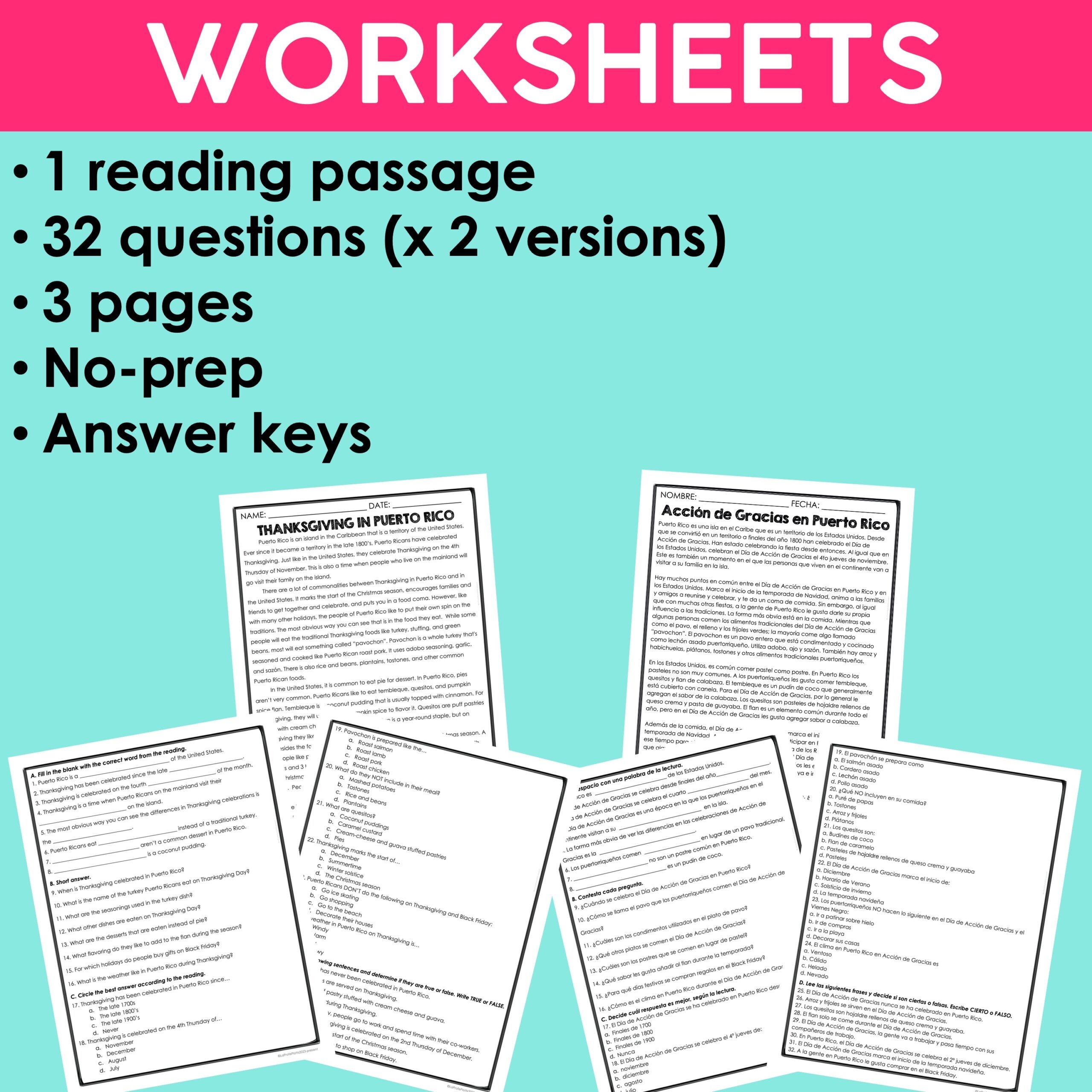 Thanksgiving In Puerto Rico Reading Activities Spanish Sub Plans