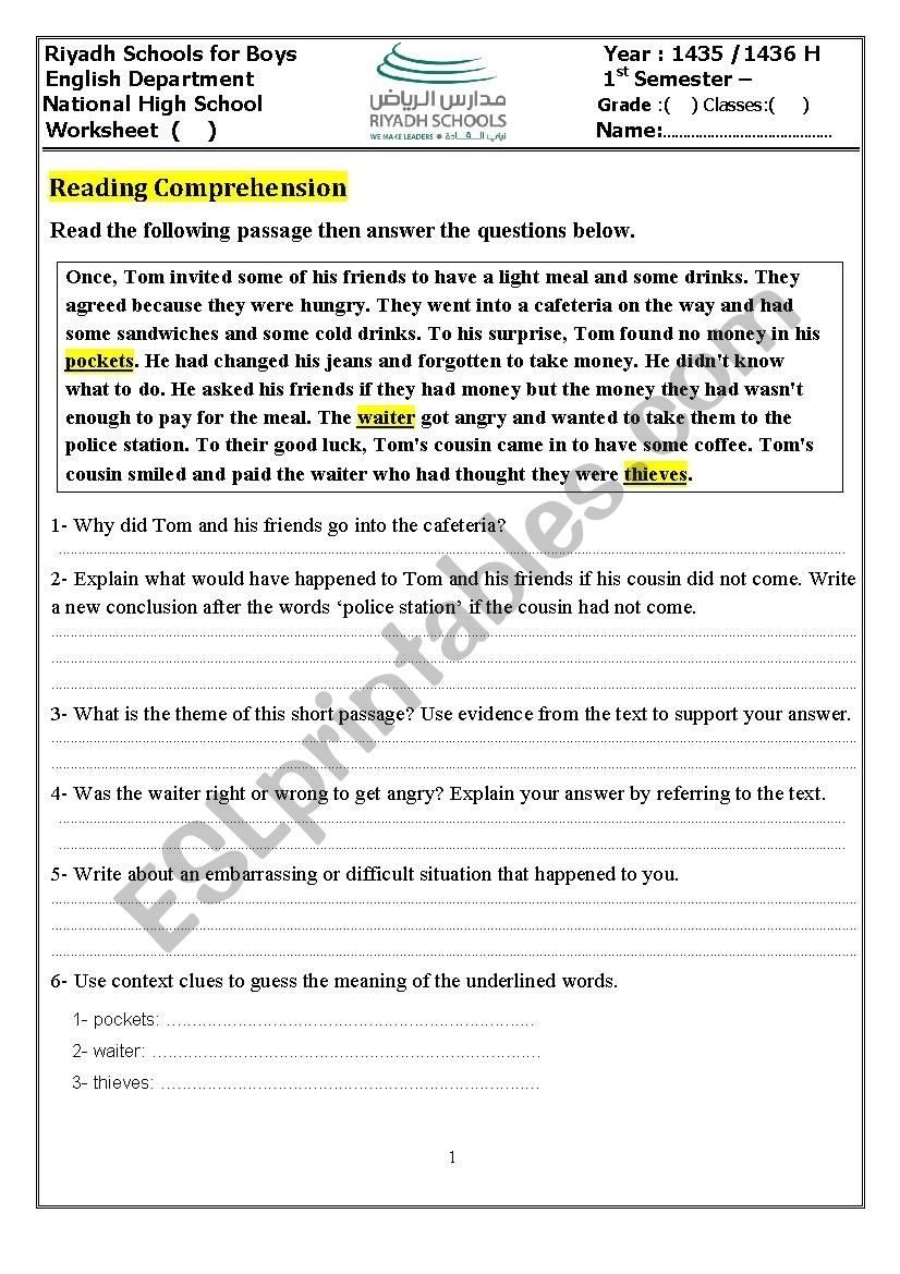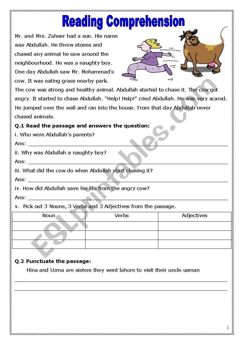 Reading Comprehension ESL Worksheet By Asmajabbar