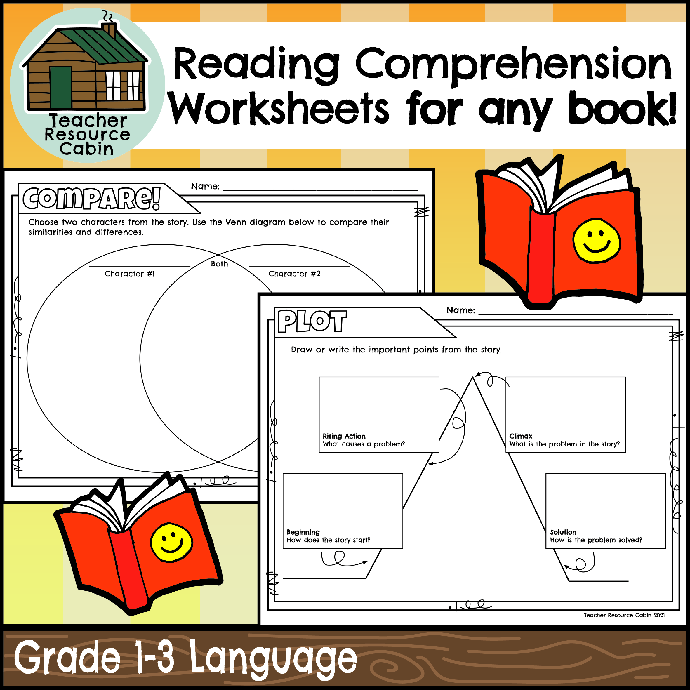 Reading Comprehension Worksheets For ANY Book NO PREP Grade 1 3 Language Teacher Resource Cabin