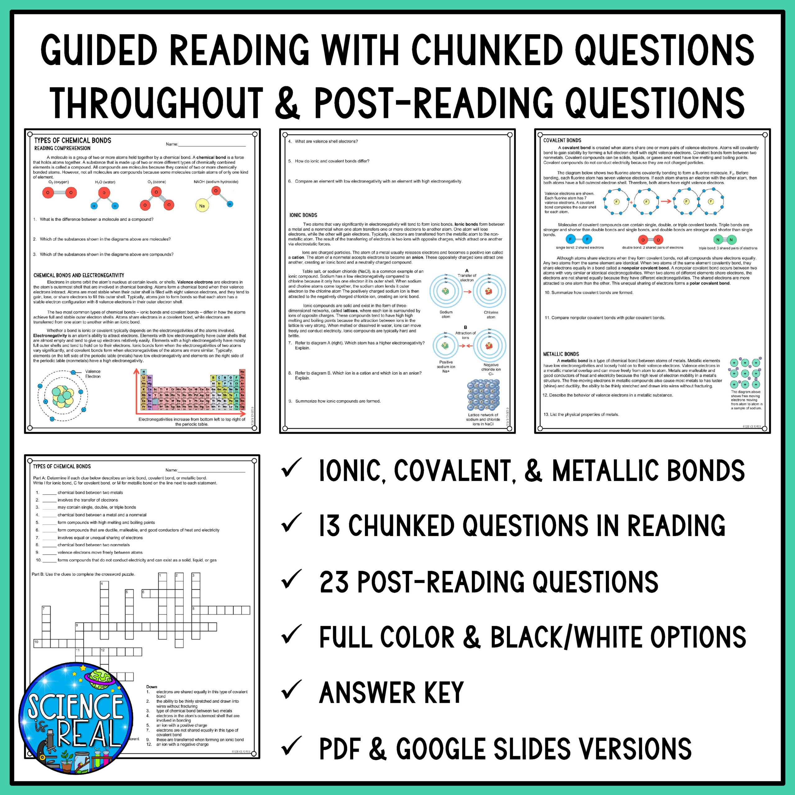 Chemical Bonds Guided Reading Comprehension Ionic Covalent U0026 Metallic Classful