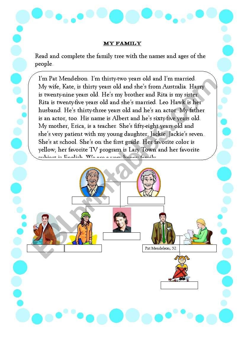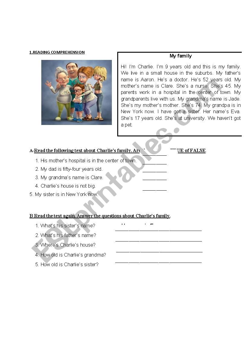Family Reading Comprehension With Exercises ESL Worksheet By MarionG