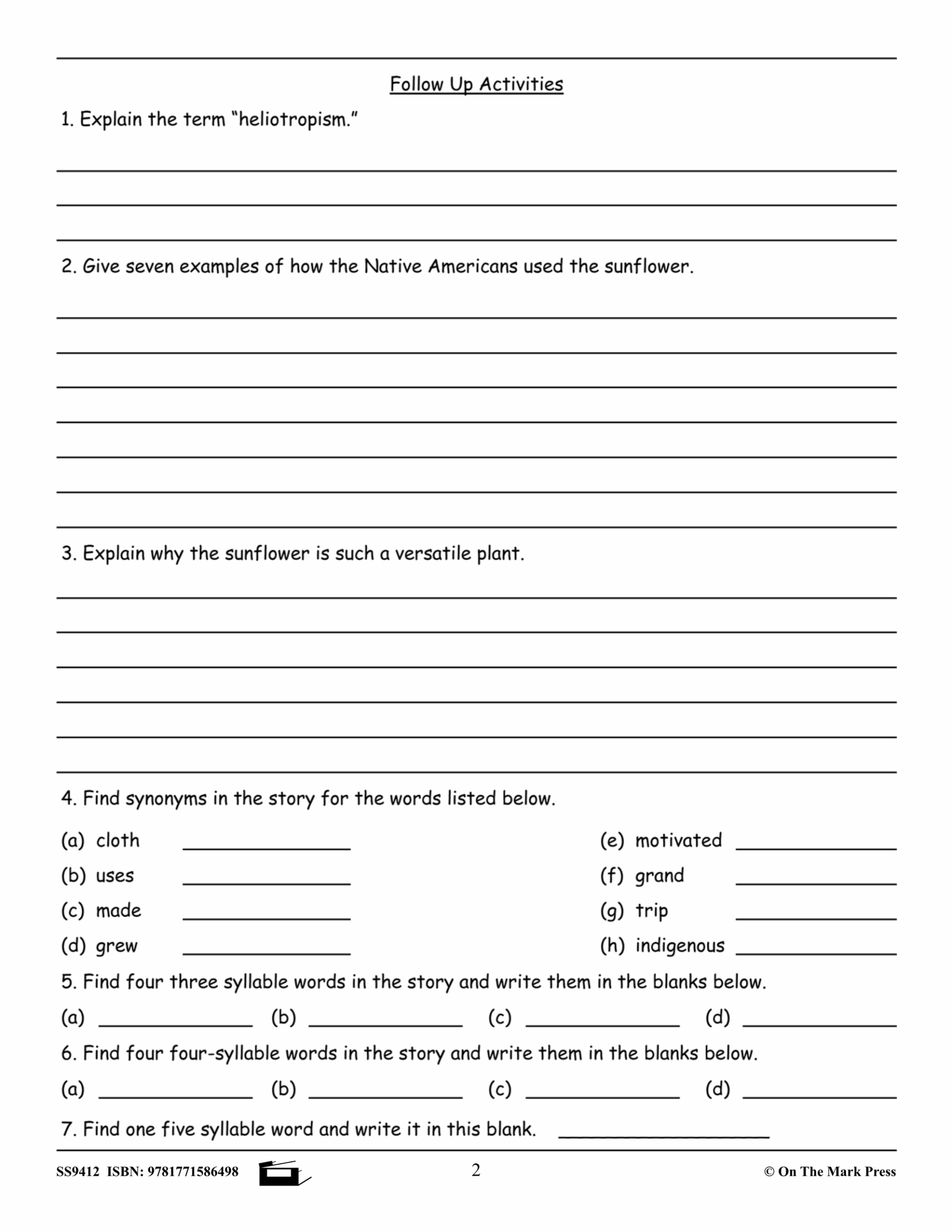Reading Comprehension Exercises Grade 6 For The Ontario