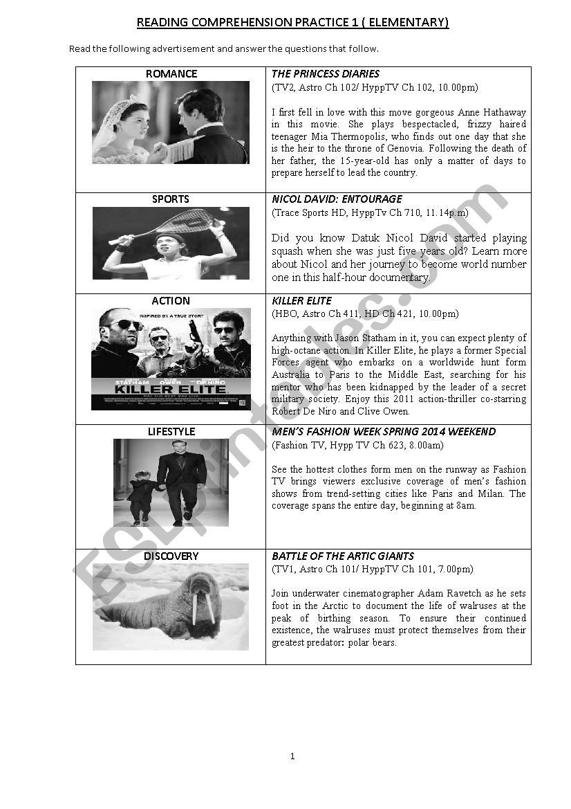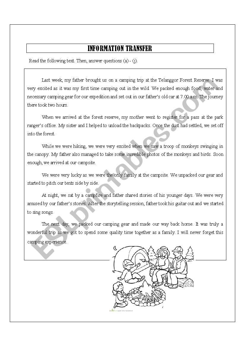 READING COMPREHENSION AND INFORMATION TRANSFER PRACTICE ESL