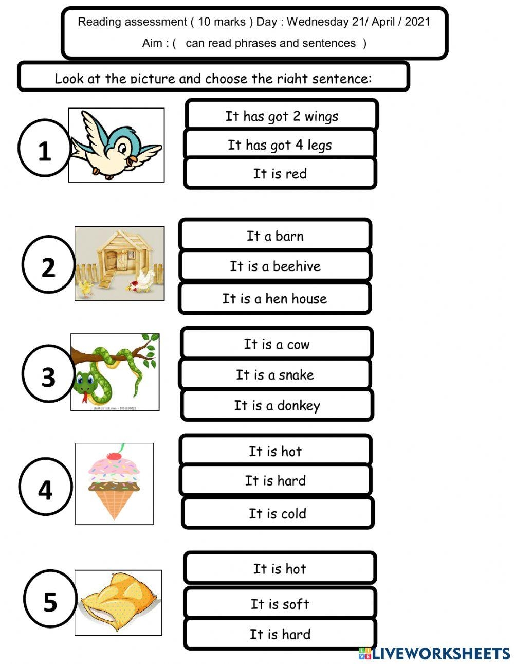 Reading Assessment Grade 1 Worksheet Live Worksheets Worksheets Library