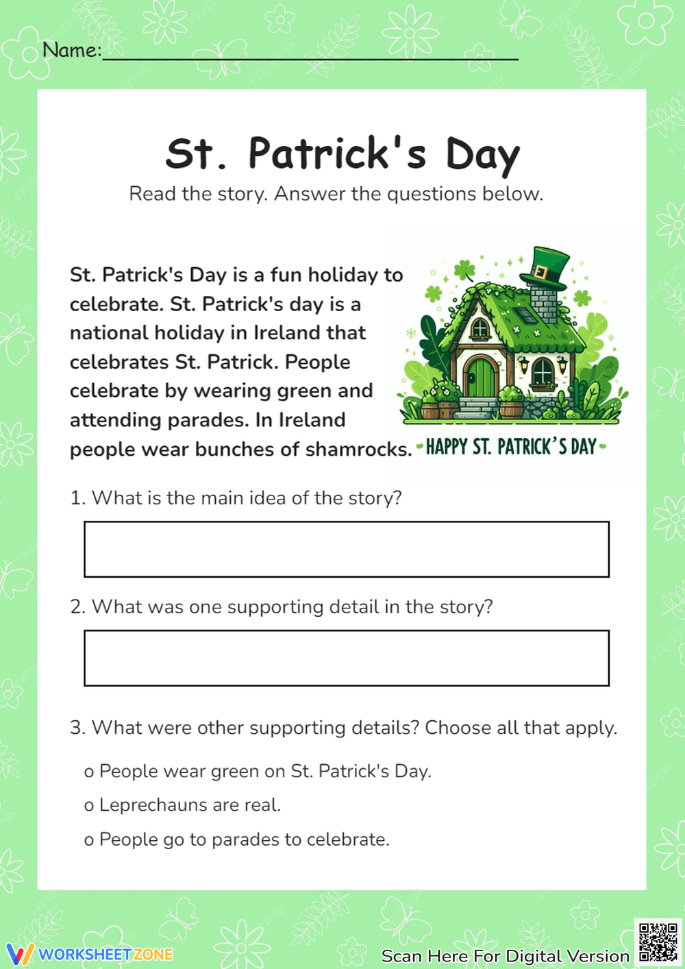 Main Idea Worksheet 4 Reading Activity