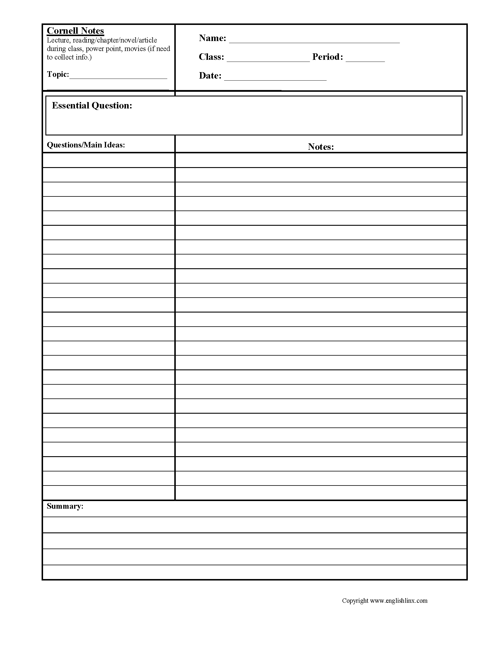 Reading Comprehension Worksheets Cornell Notes Comprehension Worksheets