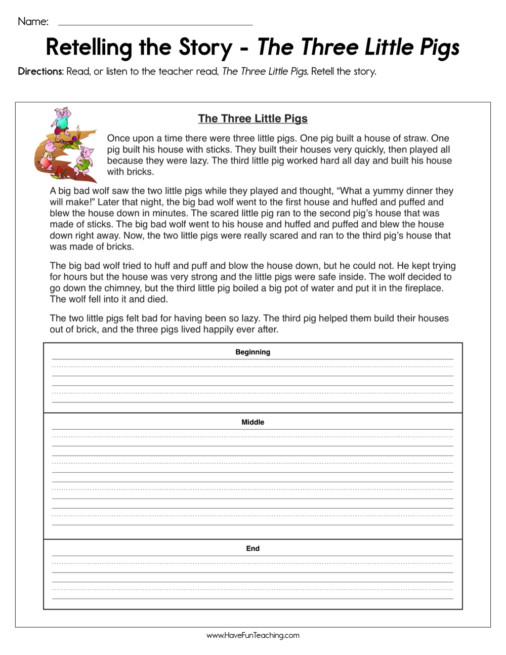Retelling The Story The Three Little Pigs Worksheet Have Fun
