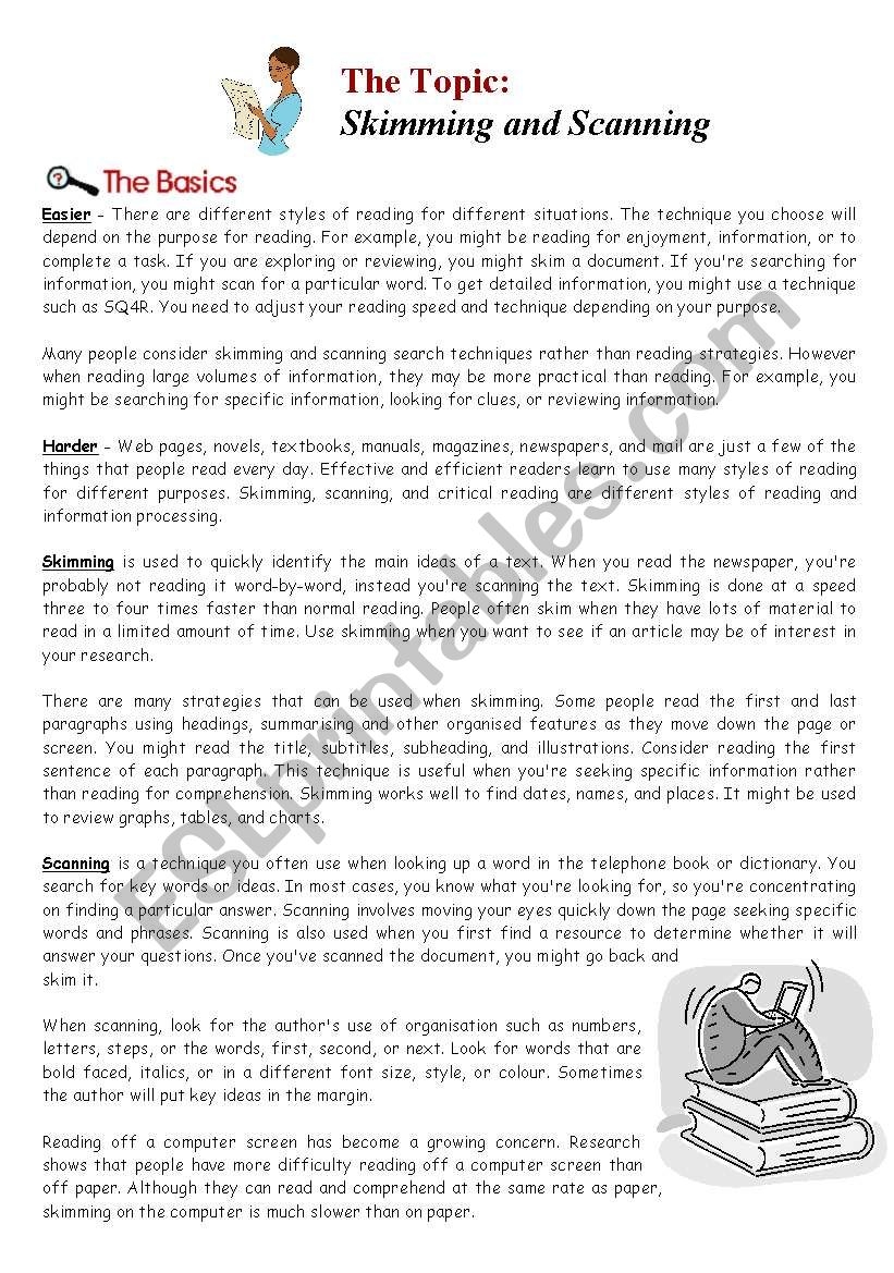 Skimming And Scanning ESL Worksheet By Brandonmcgyver