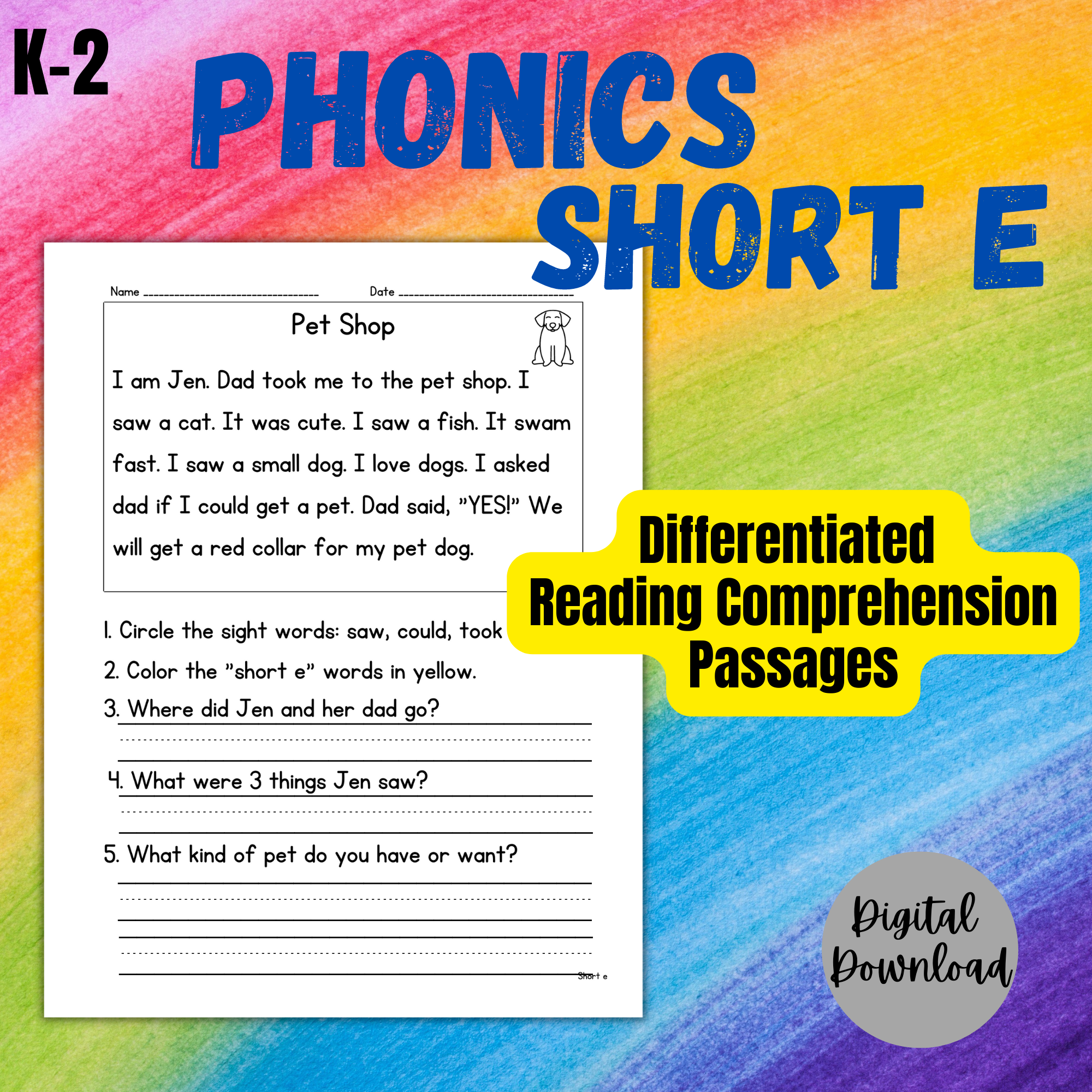 Short E Story Passage Reading Comprehension Worksheets Made By Teachers