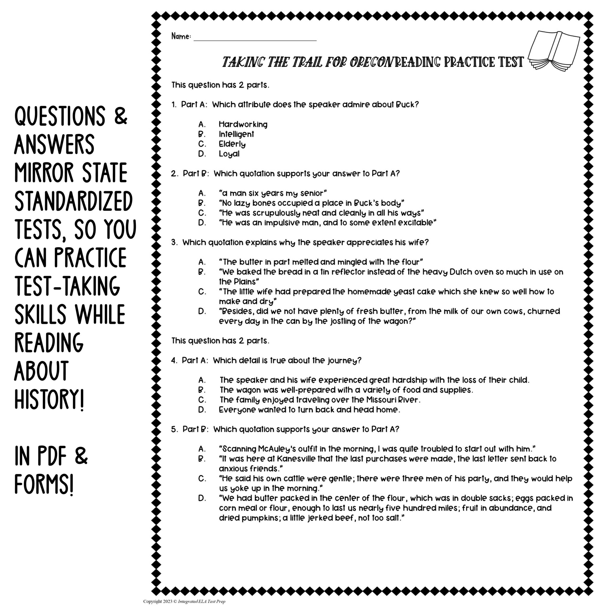 Reading Comprehension Passage Practice Test Oregon Trail Informational Text Made By Teachers