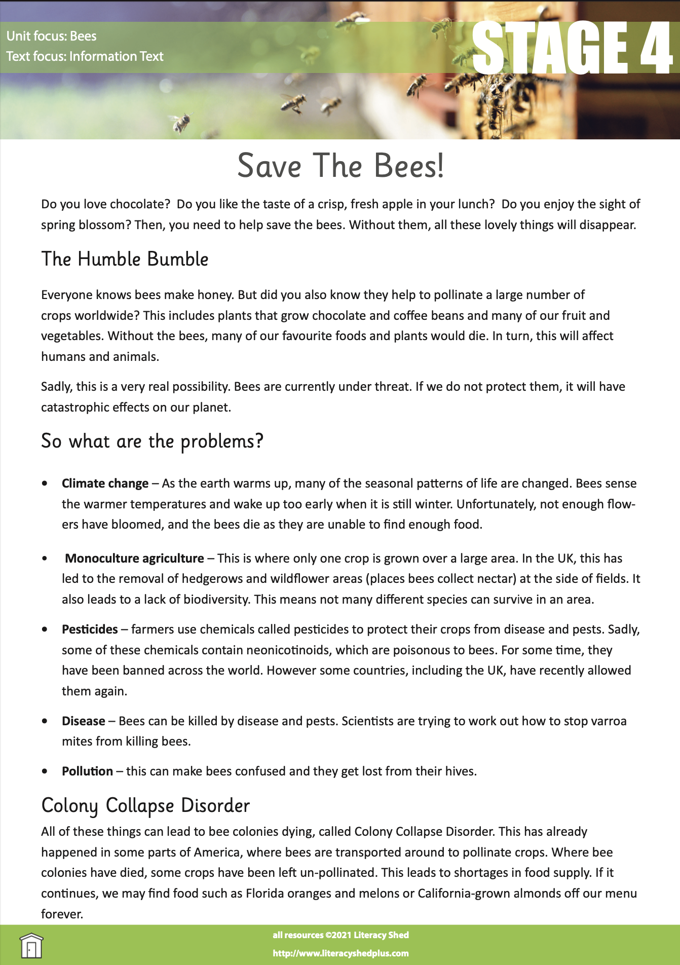 Literacy Shed Plus LitShed Resource Save The Bees Stage 4 Comprehension