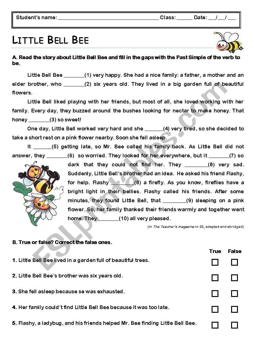 Little Bell Bee ESL Worksheet By KittyCat